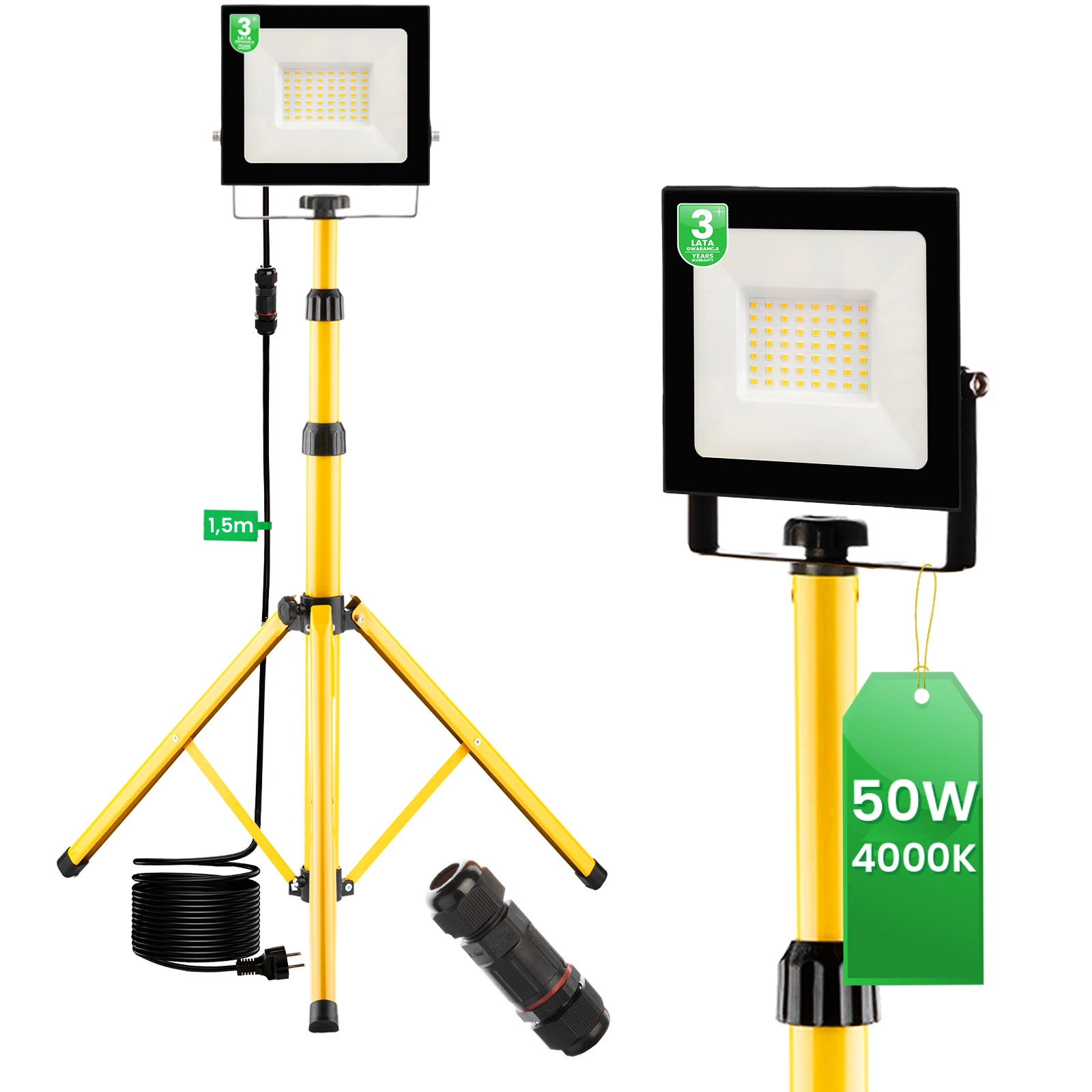 LED reflektor ZUNA2 Halogenová lampa 50W 4000K na stojanu + kabel + hermetický konektor LUMILED