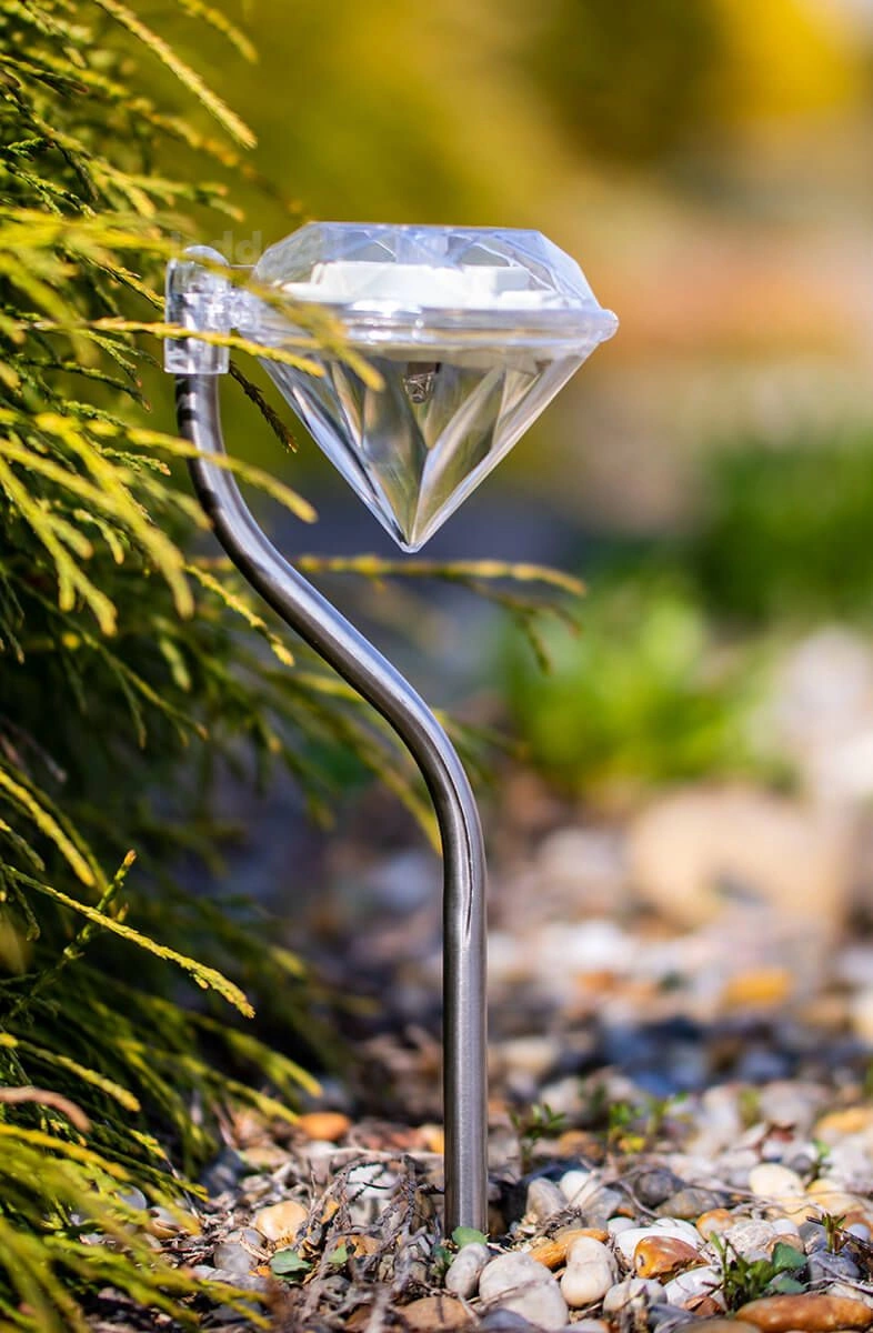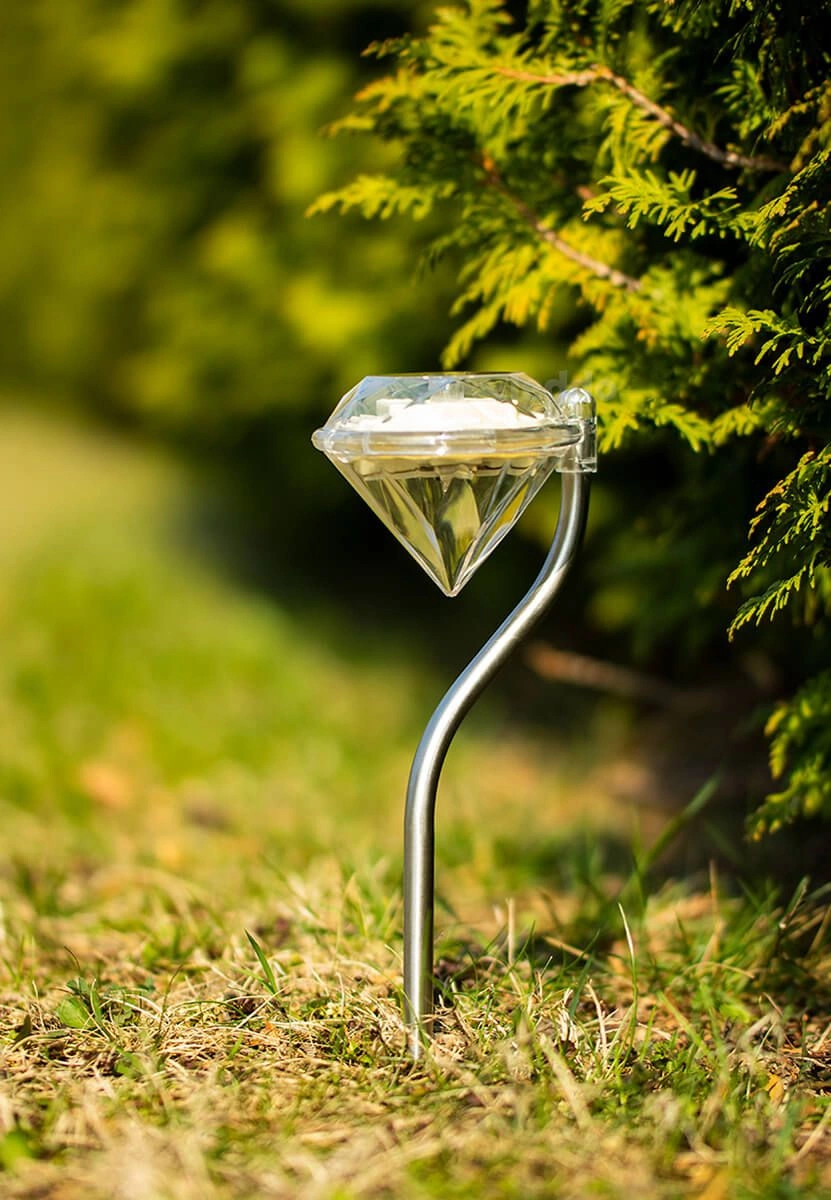 Solární lampa v chromovém provedení ve tvaru diamantu poslouží jako dekorativní a praktické osvětlení vaší zahrady. Umístěním tuctu těchto lamp po obou stranách zahradní aleje dosáhnete fantastického vizuálního efektu. Ideální způsob, jak strávit teplý letní večer v takovém atmosférickém osvětlení.