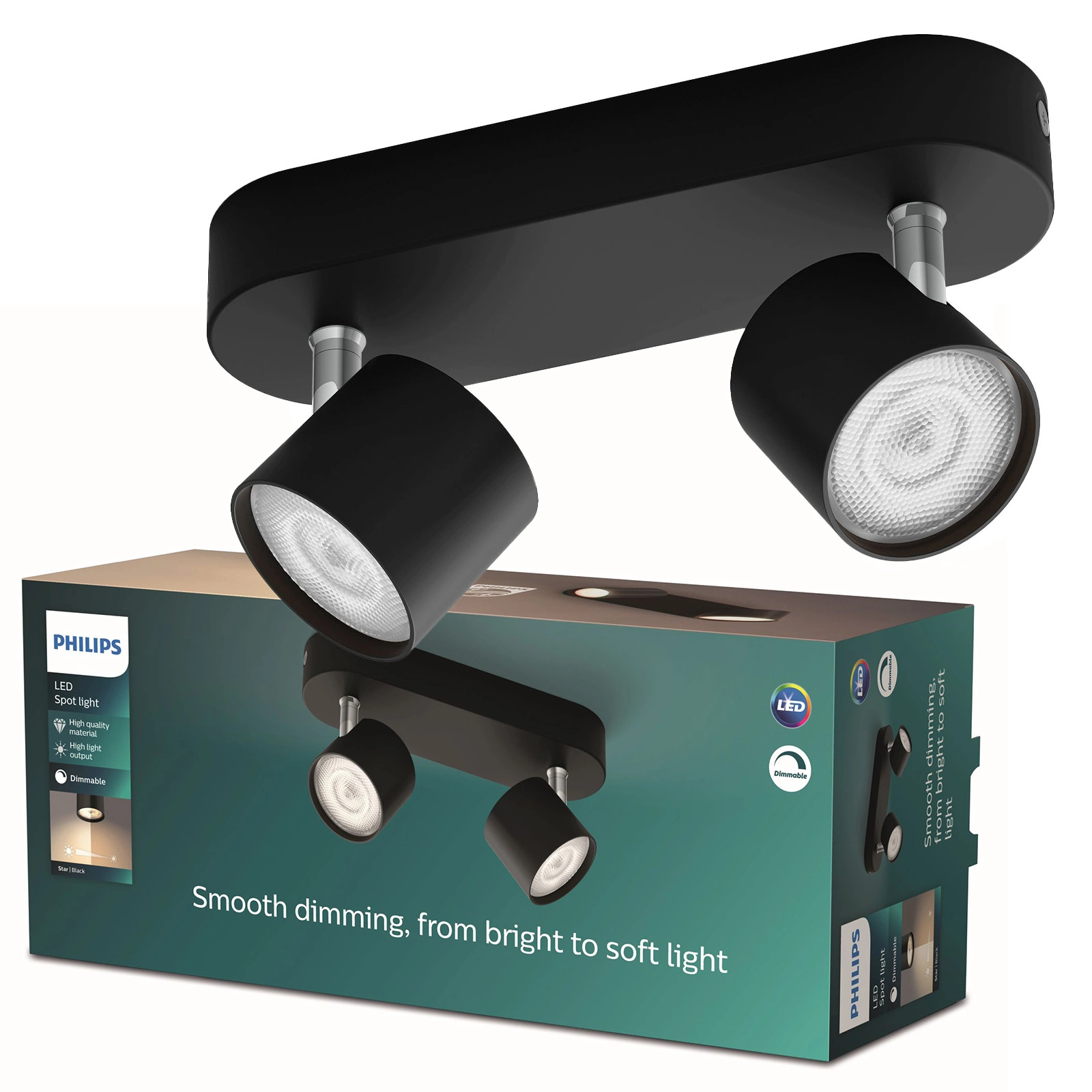 Funkční reflektor od Philips s integrovaným světelným zdrojem je ideální osvětlení pro použití v domácnosti. Díky funkci stmívání můžete plynule regulovat intenzitu světla podle svých preferencí - od jasného a funkčního až po uvolňující teplé světlo, které podporuje relaxaci.