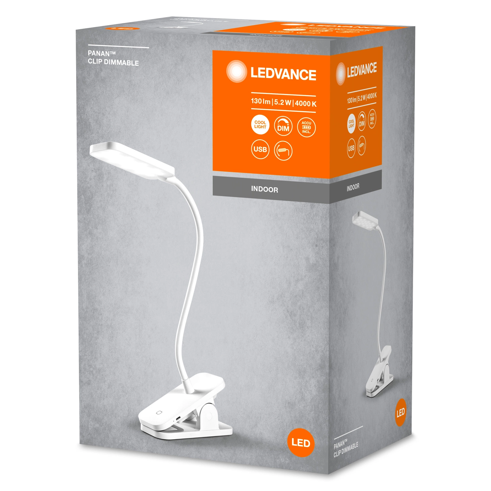 LED stolní lampa Clip nastavitelná 5,2W 80lm 4000K neutrální stmívatelná baterie bílá Panan Ledvance