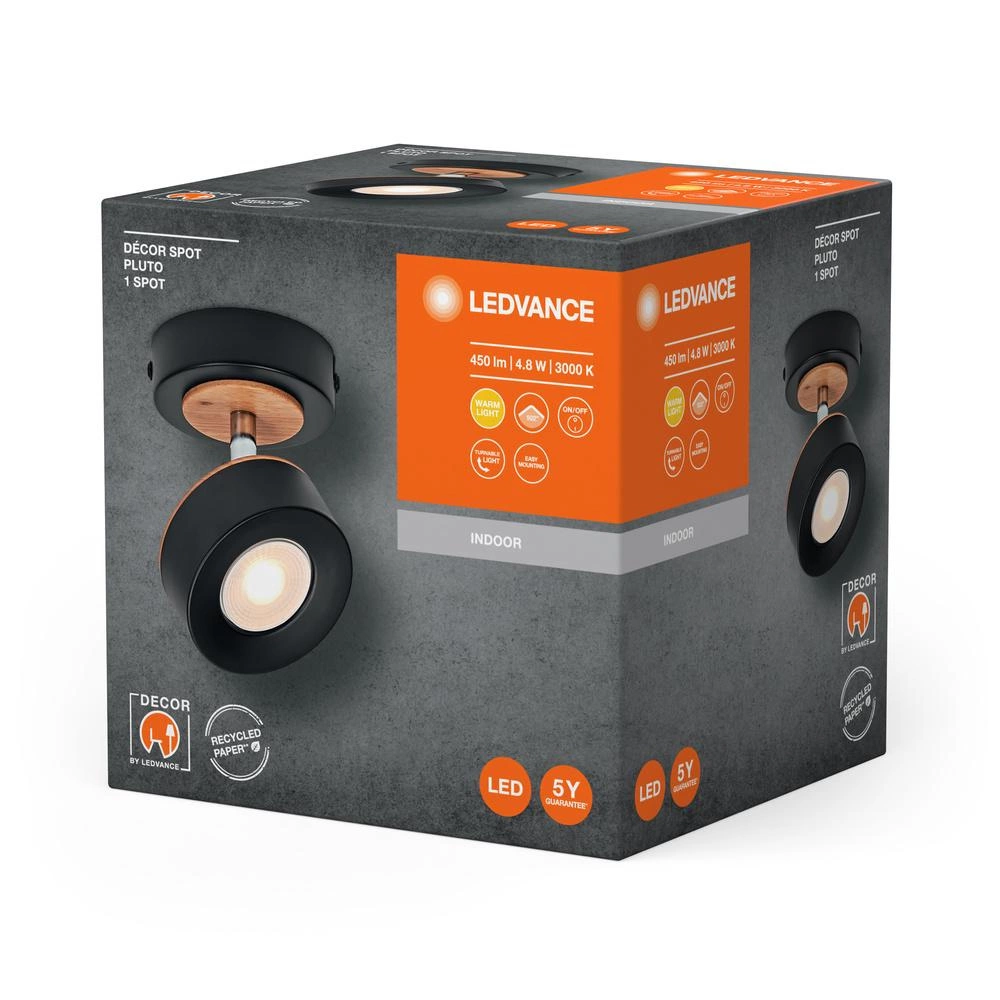 Nástěnné stropní svítidlo Ledvance Pluto LED 4,8 W 300 lm CCT Dekorativní černý bod kombinuje moderní technologii LED s funkčním designem. Díky svému kompaktnímu designu a elegantnímu černému provedení je ideální do každého moderního interiéru. Nabízí světelný tok 300 lm a poskytuje vynikající osvětlení při nízké spotřebě energie pouhé 4 kWh.