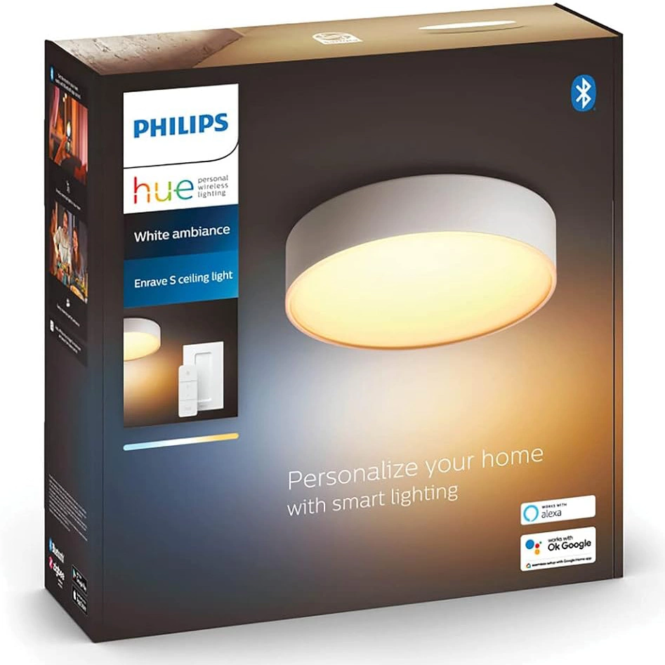 Stropní světlo HUE ENRAVE LED plafond uznávaný a respektovaný v oboru osvětlení Philips. Svítidlo vybavené integrovaným světelným zdrojem LED 9,5W a velmi účinný světelný výkon - 1220 lm, vyzařuje příjemné a relaxační světlo z nastavitelná teplota barev od příjemně teplé přes neutrální až po studenou, s nimiž můžeme vytvořit náladu vhodnou pro každou příležitost. Stropní svítidlo ENRAVE může fungovat samostatně nebo jako součást systému chytrého osvětlení po připojení k můstku Hue Bridge. Snadné zapínání a vypínání světel, stmívání, rozjasňování a výběr z různých světelných scén.