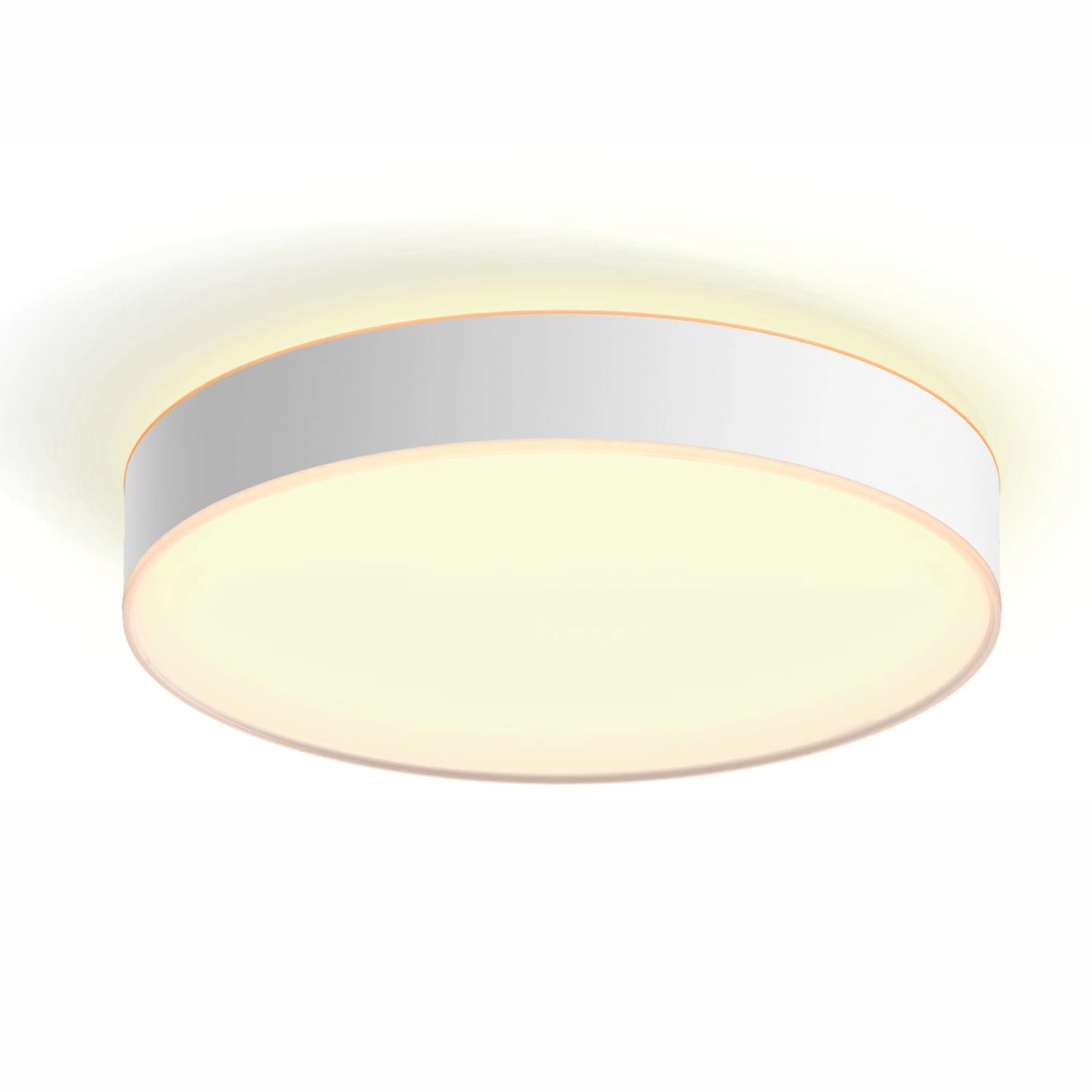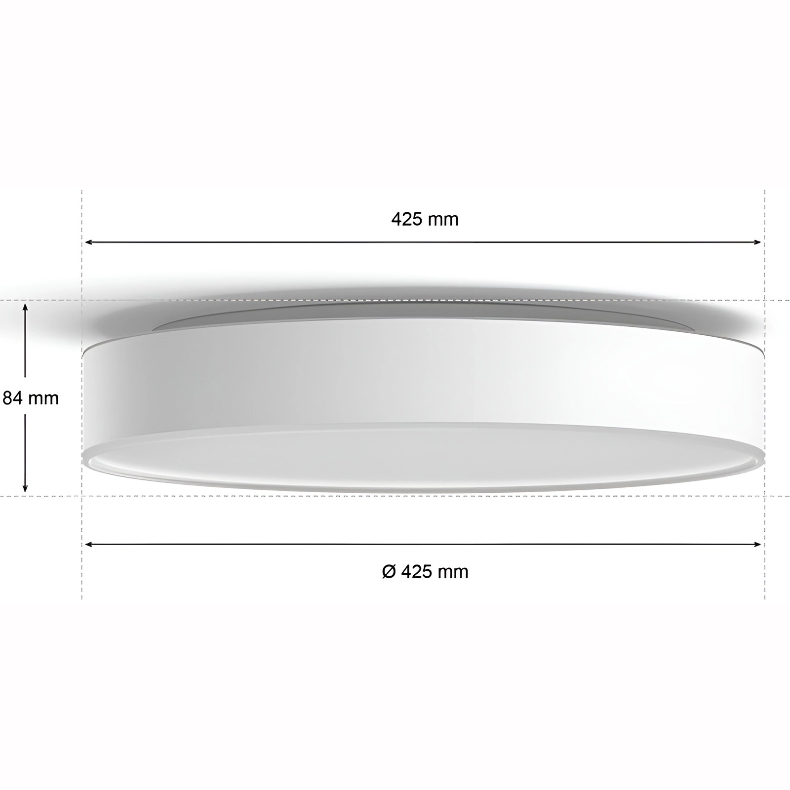 Stropní světlo HUE ENRAVE LED plafond uznávaný a respektovaný v oboru osvětlení Philips. Svítidlo vybavené integrovaným světelným zdrojem LED 33,5W a velmi účinný světelný výkon - 4300 lm, vyzařuje příjemné a relaxační světlo z nastavitelná teplota barev od příjemně teplé přes neutrální až po studenou, s nimiž můžeme vytvořit náladu vhodnou pro každou příležitost. Stropní svítidlo ENRAVE nejenže díky svému stylovému krytu dokonale ladí s interiérem domácnosti, ale také nabízí možnost vyzařování světla směrem dolů i nahoru, což zaručuje funkční osvětlení. Tato lampa může fungovat samostatně nebo jako součást systému chytrého osvětlení po připojení k můstku Hue. Snadné zapínání a vypínání světel, stmívání, rozjasňování a výběr z různých světelných scén.