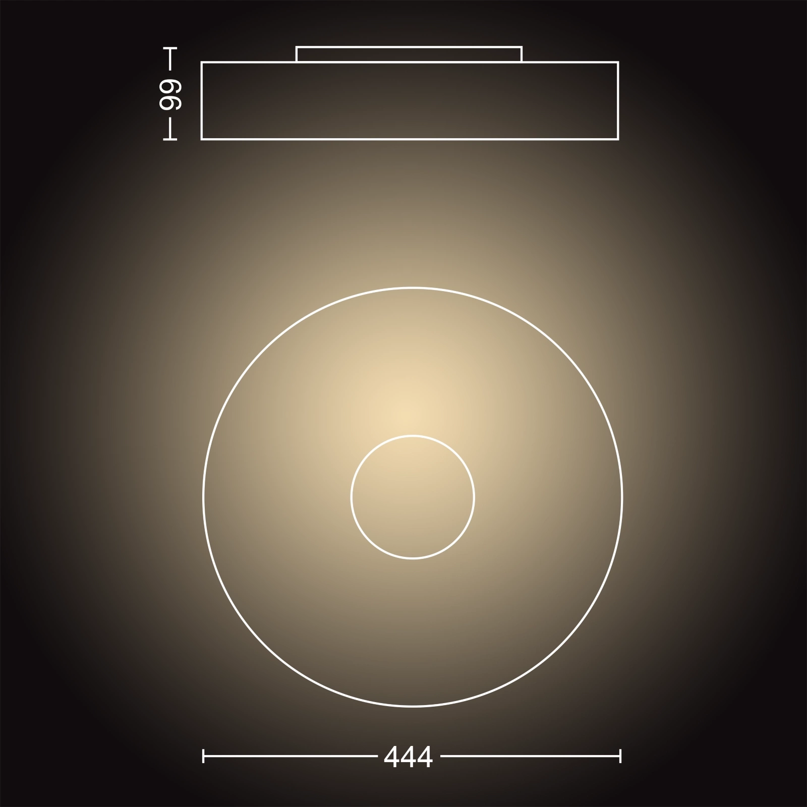 Stropní světlo HUE FAIR LED plafond uznávaný a respektovaný v oboru osvětlení Philips. Svítidlo vybavené integrovaným světelným zdrojem LED 25W a velmi účinný světelný výkon - 2900 lm, vyzařuje příjemné a relaxační světlo z nastavitelná teplota barev od příjemně teplé přes neutrální až po studenou, s nimiž můžeme vytvořit náladu vhodnou pro každou příležitost. Stropní svítidlo FAIR nejenže dokonale ladí s interiérem domácnosti díky svému štíhlému a stylovému krytu, ale také nabízí možnost vyzařování světla směrem dolů i nahoru, což zaručuje funkční osvětlení. Tato lampa může fungovat samostatně nebo jako součást systému chytrého osvětlení po připojení k můstku Hue. Snadné zapínání a vypínání světel, stmívání, rozjasňování a výběr ze čtyř různých světelných scén.