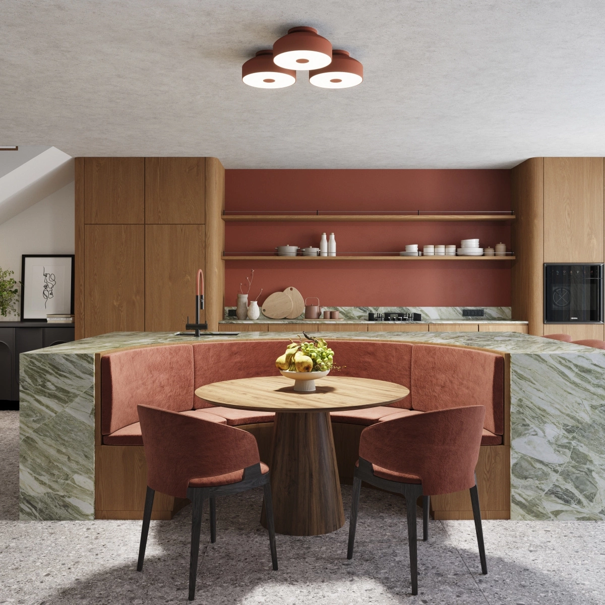 - Kuchyně: Vhodné do moderní kuchyně, kde nabízí funkční osvětlení při vaření a estetický vzhled.