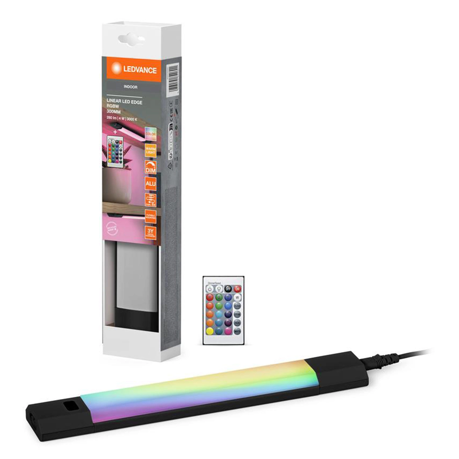 LED světlo pod skříňku se senzorem pohybu 4W 230lm 3000K teplé RGBw stmívatelné dálkové ovládání černé 30cm lineární hrany Ledvance