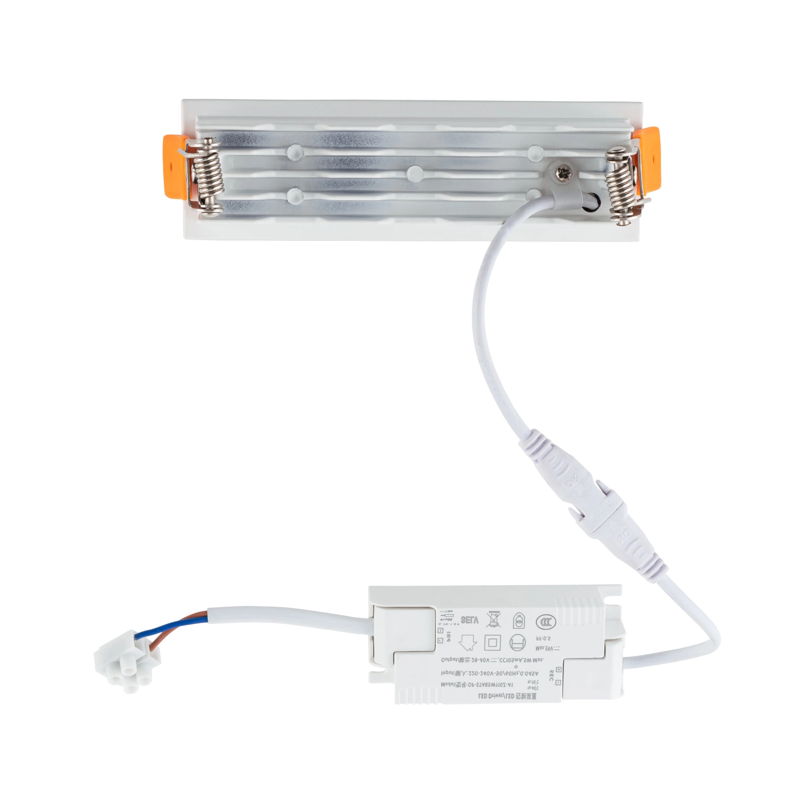Výrobek má dlouhou životnost až 30000 hodin a krytí IP20, takže je ideální pro použití v interiéru. Zapuštěná montáž a vestavěný zdroj LED zajišťují estetiku a úsporu místa. Pracuje na standardním napětí 220-230 V s provozní frekvencí 50-60 Hz, což zaručuje bezpečnost a stabilitu. Je certifikován CE a nabízí dvouletou záruku, což dále potvrzuje kvalitu výrobku.
