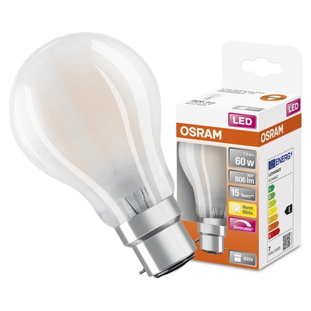 Žárovka Osram Retrofit CLASSIC se vyznačuje dlouhou životností až 15 000 hodin a je stmívatelná, což vám umožní nastavit intenzitu světla podle vašich potřeb. Díky robustnímu dříku B22d se navíc snadno instaluje do standardních svítidel. Žárovka je optimalizována pro použití v interiéru a splňuje všechny požadované bezpečnostní a kvalitativní normy, takže je spolehlivou volbou pro osvětlení vaší domácnosti.