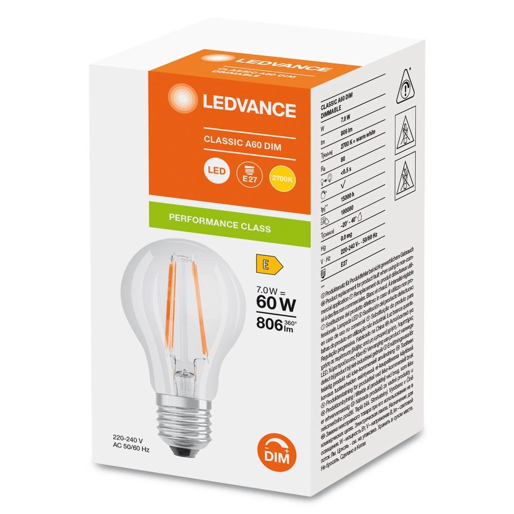 LED žárovka A60 E27 od renomované značky LEDVANCE je vynikající alternativou k tradičním 60W žárovkám a zároveň nabízí výraznou úsporu energie díky spotřebě pouhých 7 W. Je vybaven paticí E27 a poskytuje světelný tok 806 lumenů, což zaručuje jasné osvětlení v teplém bílém odstínu (2700 K). Díky technologii žárovky a možnosti nastavení intenzity světla je žárovka ideální pro různé interiéry a poskytuje nejen funkčnost, ale i estetický vzhled.