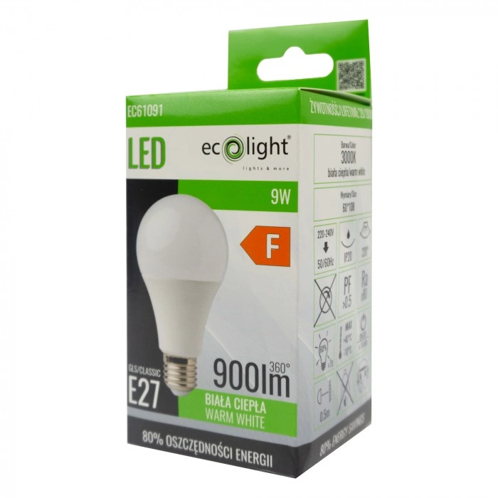 Objevte novou kvalitu osvětlení s žárovkou LED A60 E27. Tato úsporná žárovka od společnosti Ecolight nabízí výkon 9 W a intenzivní světelný tok 900 lm. Se světelnou účinností 100lm/W získáte plný jas při minimální spotřebě energie. Žárovka je navržena s ohledem na pohodlí a generuje teplé bílé světlo s barevnou teplotou 3000 K, takže je ideální pro domácí interiéry, kde vytvoří útulnou, relaxační atmosféru.