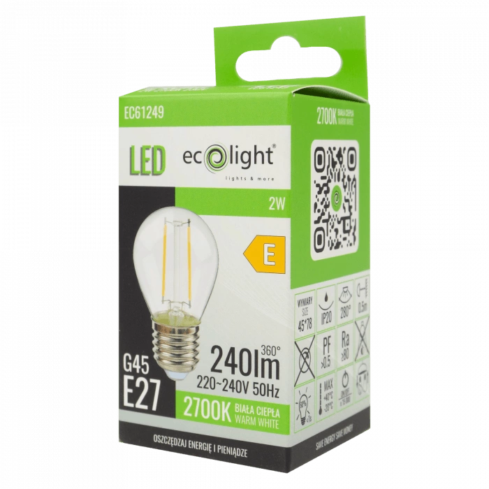 Objevte dokonalou kombinaci elegance a modernosti s žárovkou LED Bullet P45 E27 2W 240lm 2700K od společnosti Ecolight. Tato žárovka nabízí teplé bílé světlo, které s barevnou teplotou 2700K vnese do vašeho domova útulnou a příjemnou atmosféru. Její klasický kulovitý tvar a průhledný difuzor zdůrazňují estetiku žárovky a dodávají interiérům jemný šarm a eleganci.