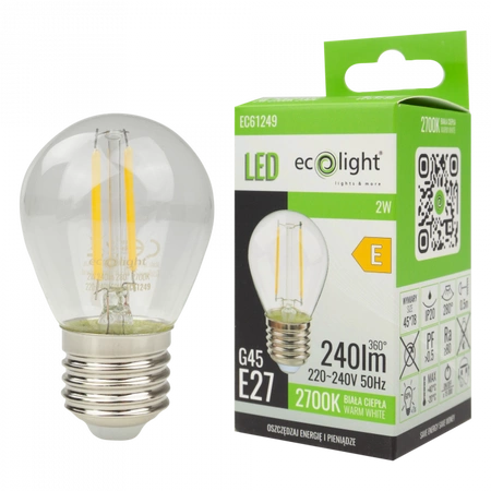 Díky nejmodernější technologii žárovky spotřebuje pouhé 2 W, přičemž poskytuje jasný a rozptýlený světelný tok 240 lm. Díky širokému úhlu vyzařování 280° zaručuje rovnoměrné osvětlení jakékoli místnosti, takže je ideální volbou do ložnice, obývacího pokoje nebo pracovny. Nechte světlo ve svém domově působit - vyberte si LED žárovku, která kombinuje energetickou účinnost s výjimečným designem!
