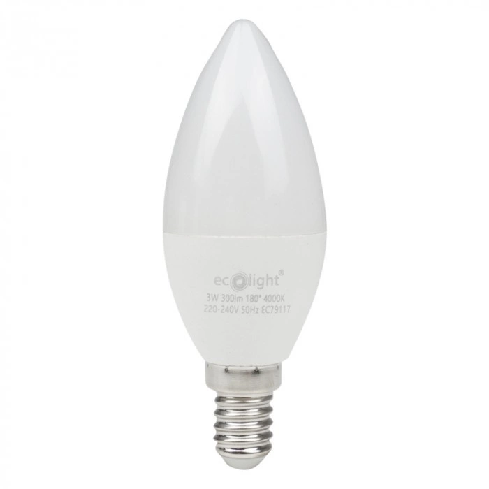 Investujte do moderního osvětlení s 3W žárovkou LED Candle B37 E14 od společnosti Ecolight! Tato jedinečná 3W žárovka poskytuje světelný tok 270 lm, což z ní činí ideální volbu pro ty, kteří hledají energeticky úsporné řešení osvětlení pro své domovy. S barevnou teplotou 4000 K poskytuje neutrální bílé světlo, které je ideální pro každou místnost. Úhel rozložení světla 180° zaručuje rovnoměrné osvětlení prostoru a index podání barev Ra 80 věrně reprodukuje barvy v okolí.
