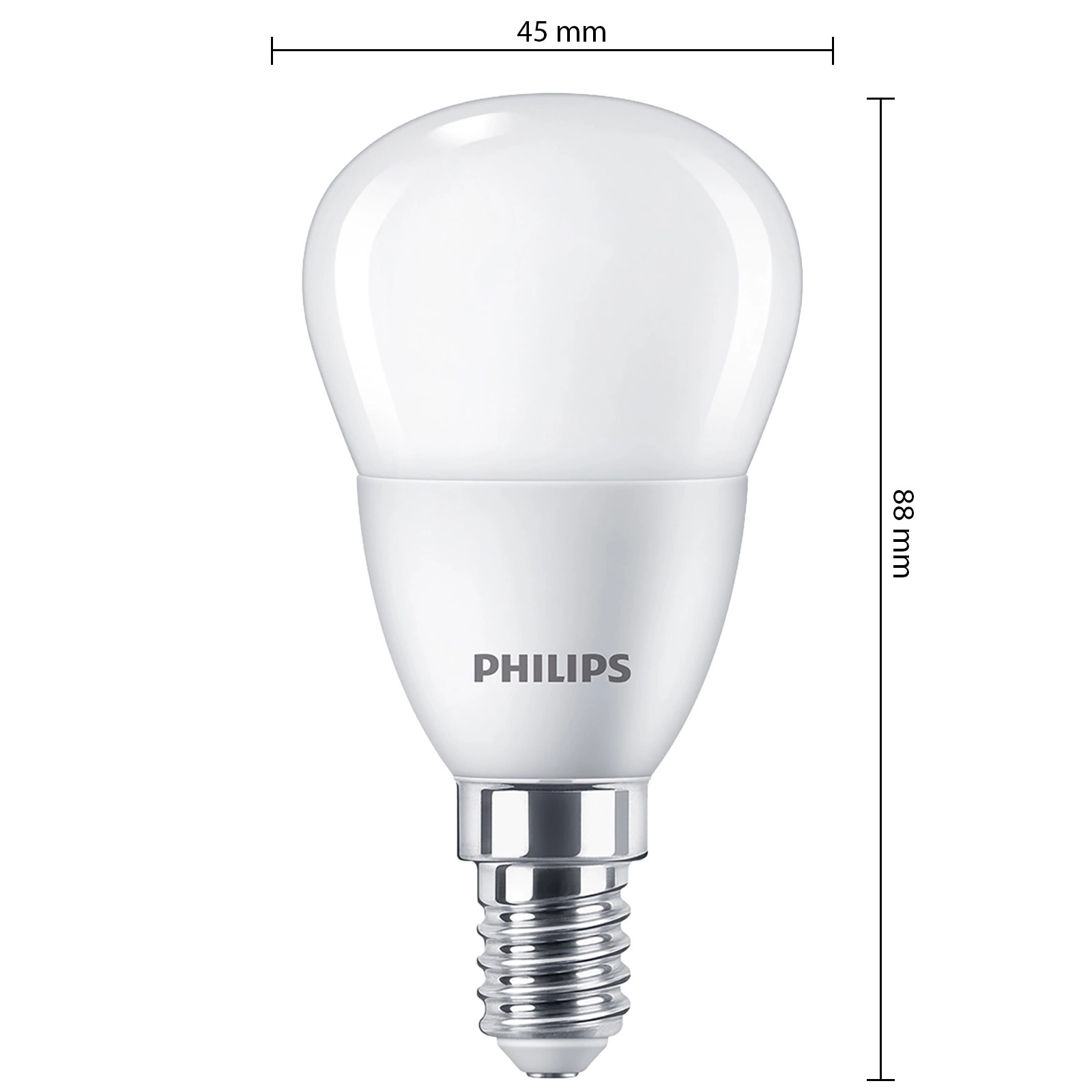Kulový tvar P45 podtrhuje moderní design celého interiéru. Žárovka je vyrobena z odolného plastu, díky čemuž je mimořádně odolná proti mechanickému poškození. K estetickému vzhledu přispívá matná povrchová úprava a mléčná barva stínidla. Výrobek má dlouhou životnost15 000 hodin a vydrží až 50 000 cyklů zapnutí/vypnutí. Žárovka Philips Essential LED splňuje normy CE a RoHS a je na ni poskytována dvouletá záruka, takže máte jistotu vysoké kvality a bezpečného používání. Šetrnost k životnímu prostředí ještě podtrhuje provedení bez obsahu rtuti.