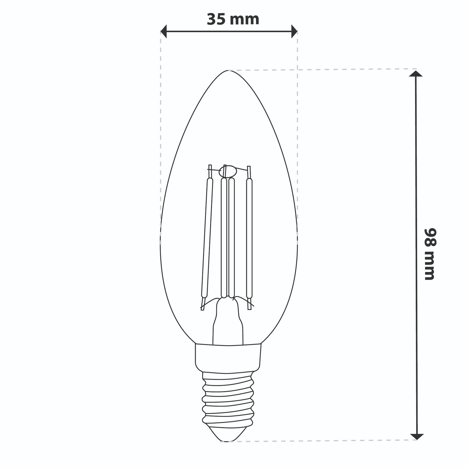 LED žárovka E14 svíčka B35 2,2W 470lm = 40W 2700K teplá bílá 360° Filament energetická třída A LUMILED