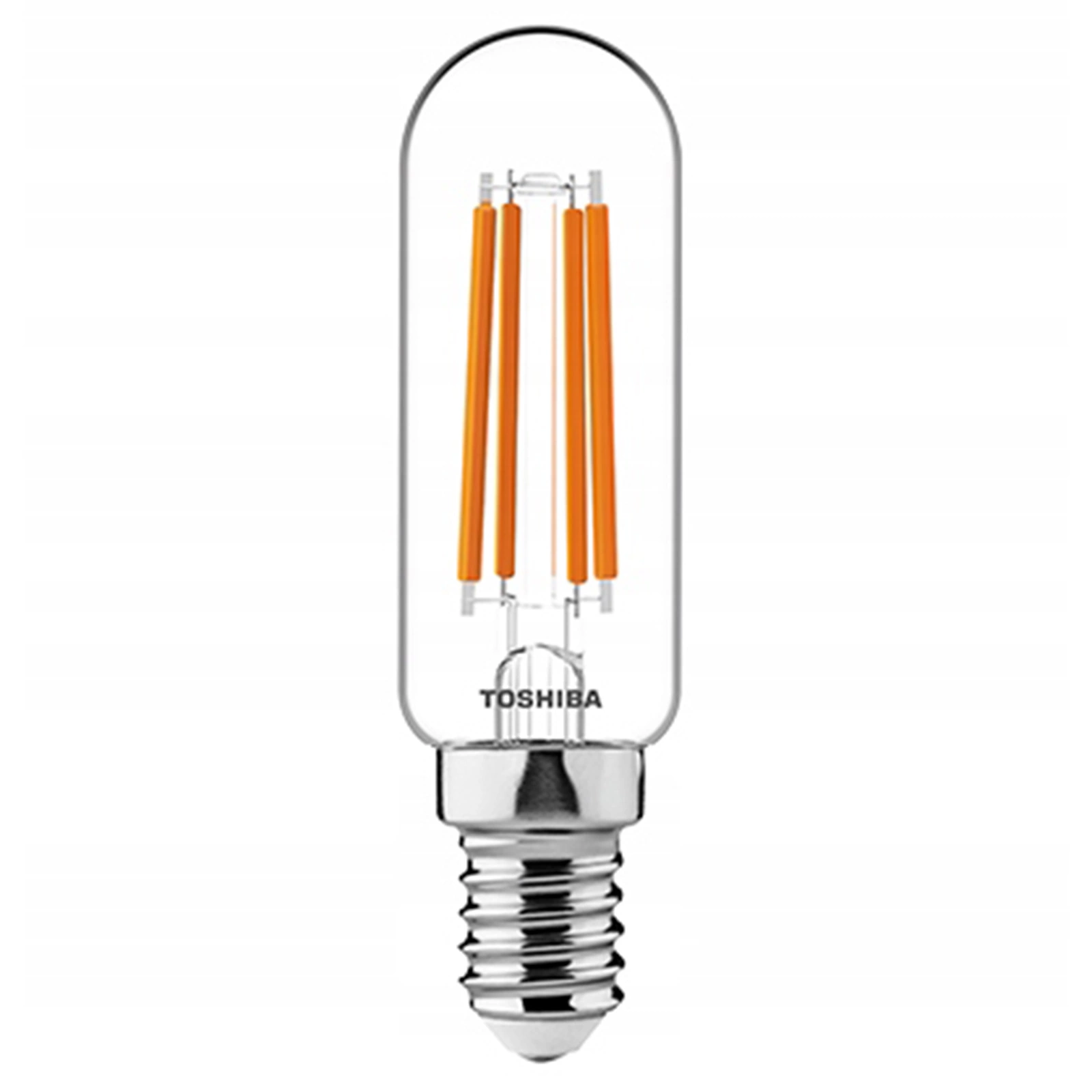 Žárovka LED FILAMENT společnosti Toshiba s uzávěrem E14 a sílu 4,5W je vysoce kvalitní světelný zdroj LED. Tato žárovka byla vyrobena s využitím moderních řešení založených na inovativní technologii LED, která se vyznačují tím, že vysokou účinností světelných parametrů, věrnou reprodukcí barev osvětlovaných předmětů a mimořádně dlouhou životností. Hlavní výhodou LED žárovek je nižší spotřeba elektrické energie ve srovnání se standardními světelnými zdroji. V podobě tradiční žárovky s průhledným žlutým stínítkem. Žárovku lze instalovat do všech běžných svítidel se závitem E14. Výměna světelného zdroje je jednoduchá a nezpůsobuje žádné problémy. Stačí vyměnit staré žárovky za nové a je hotovo.