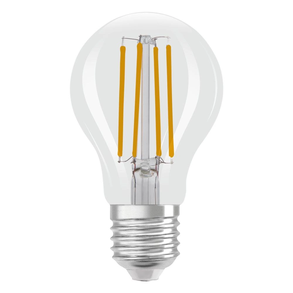 Žárovka LED GLOWdim ze série SUPERSTAR známé značky na trhu OSRAM je moderní světelný zdroj se závitem E27 z 7W (odpovídá žárovkám o 60W). Žárovka je vybavena systémem GLOWdim, který umožňuje kompatibilní se standardním stmívačem bez použití dalšího dálkového ovládání. GLOWdim umožňuje nastavit barvu od velmi teplé 2200K po teplou bílou 2700K. Uzavřeno v bublině A60 žárovka vyzařuje teplé světlo 2700K, zatímco světelný tok je 806lm. Společnost OSRAM použití inovativní technologie LED žárovek nám zaručuje účinnost a věrné podání barev na velmi vysoké úrovni. Největší výhodou led žárovek je snížení spotřeby energie až o několik procent 90% ve srovnání s běžnými zdroji světla. Prezentovaná LED žárovka se závitem E27 od OSRAM je ideální pro místa, jako jsou hotely, historické budovy, námořní osvětlení a obytné prostory. Pokud si vyberete žárovky OSRAM z řady SUPERSTAR CLASSIC GLOWdim, můžete si být jisti, že dostáváte profesionálně vyrobený výrobek, který vydrží velmi dlouho.