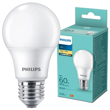 LED žárovka renomované a uznávané v oboru osvětlení PHILIPS s uzávěrem E27 a 8W s teplou barvou světla. Žárovka je ideální pro každou domácnost, obchod, hotel nebo restauraci jako klasické osvětlení a lze ji namontovat do všech tradičních svítidel, která mají patici patici E27.