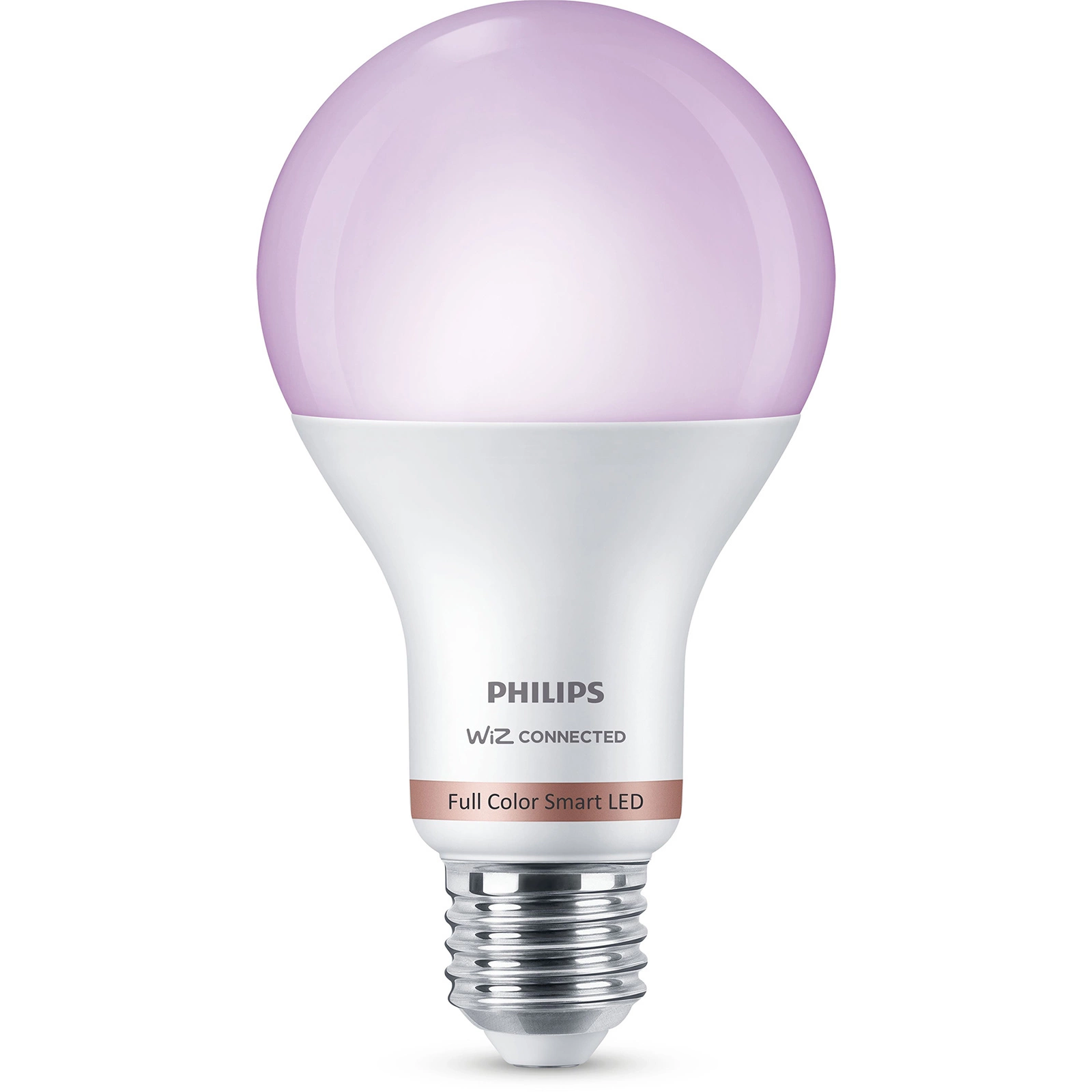 Inteligentní LED žárovka od Philips ovládání pomocí mobilní aplikace WiZ Connected. Žárovka LED se vyznačuje velmi dobrou kvalitou vyzařovaného světla, věrným podáním barev (CRI90) a vysokou světelnou účinností. Chytrá LED žárovka Philips je vybavena energeticky úsporným zdrojem LED o příkonu 13 W (odpovídá tradiční 100W žárovce), světelným tokem 1521 lm a díky mobilní aplikaci i výkonem 1521 lm WiZ Connected můžeme nastavit teplotu barvy žárovky od příjemné teplé přes neutrální až po studenou a vícebarevnou (RGB).