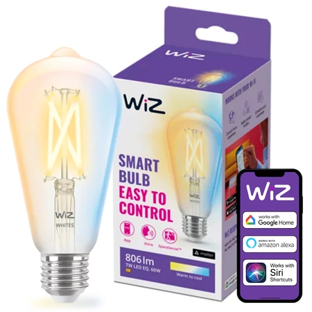 LED žárovka E27 Edison ST64 7W = 60W 806lm 2700-6500K TW FILAMENT Smart SMART WiFi Bluetooth App WiZ