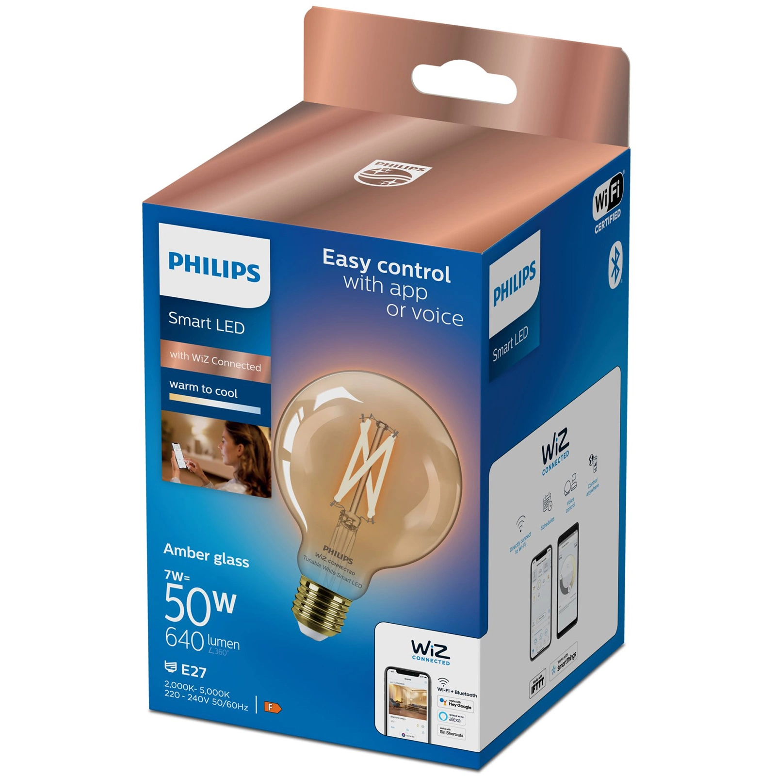 Inteligentní světelný zdroj SMART LED renomovaná značka PHILIPS, fungující na Wi-Fi. Produkty PHILIPS SMART umožňuje snadné ovládání osvětlení prostřednictvím mobilní aplikace WiZ Connected nebo hlasové asistenty, bez potřeby dalších mostů nebo rozbočovačů.