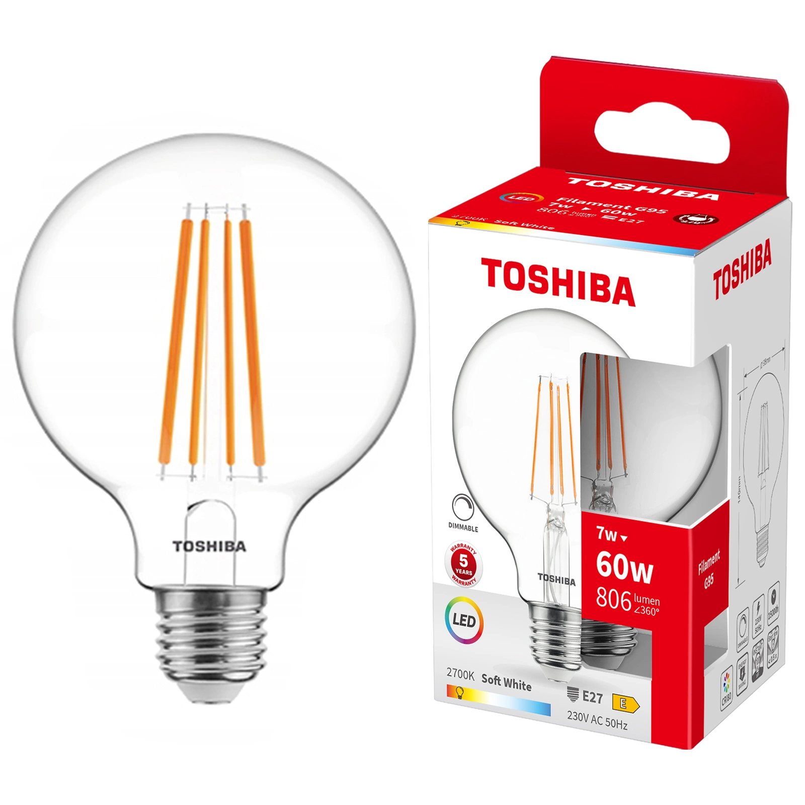 LED žárovka E27 G95 7W = 60W 806lm 2700K teplá bílá Filament Dimmable TOSHIBA