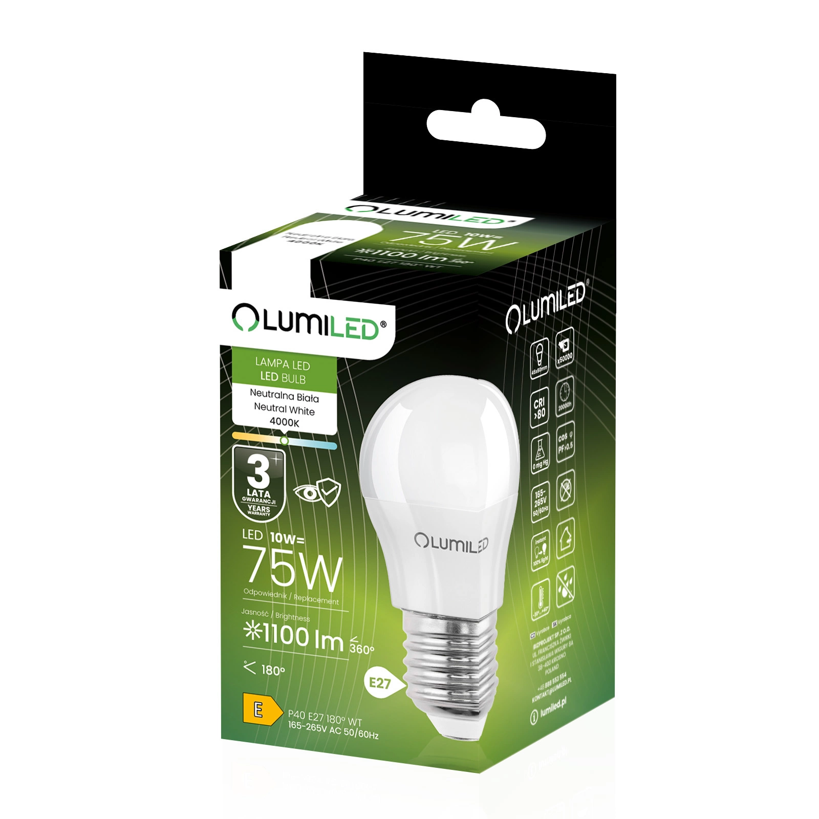 Žárovka LED Lumiled s výkonem 10 W a barvou 4000 K je kombinací vysokého výkonu a energetické účinnosti. S vyzařovaným světelným to kem až 1 100 lumenů poskytuje světlo srovnatelné s tradiční 75wattovou žárovkou a zároveň výrazně snižuje spotřebu elektrické energie. Díky malým rozměrům a závitu E27 je ideální pro nástěnné svícny, lampy a svítidla s omezeným prostorem. Je praktickou volbou pro místnosti, kde potřebujete ostré, ale oku lahodící osvětlení.