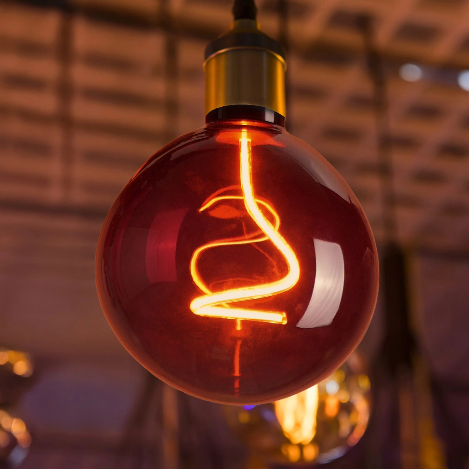 - Klasický a dekorativní vzhled: žárovka Sanico Goldlux G125 LED s červeným sklem a výraznou LED spirálou dokonale podtrhne styl každého interiéru.