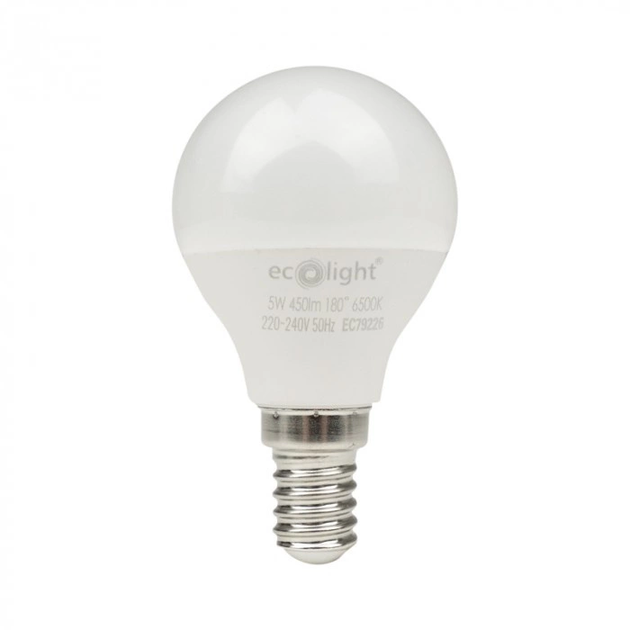 Žárovka Ecolight je vytvořena z odolného plastu s mléčnou clonou, která zajišťuje rovnoměrný rozptyl světla. Klasická patice E14 a provedení typu P45 usnadňují instalaci do většiny standardních svítidel. Je napájena napětím 220-240 V a vhodná pro provoz v síti střídavého proudu, což zaručuje účinnost a bezpečné používání. Výběrem tohoto výrobku investujete do kvality a trvanlivosti, která vám vydrží přibližně 20 000 hodin.