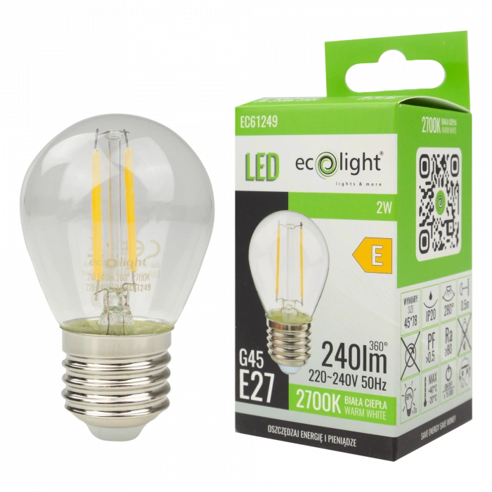 Objevte dokonalou kombinaci elegance a modernosti s žárovkou LED Bullet P45 E27 2W 240lm 2700K od společnosti Ecolight. Tato žárovka nabízí teplé bílé světlo, které s barevnou teplotou 2700K vnese do vašeho domova útulnou a příjemnou atmosféru. Její klasický kulovitý tvar a průhledný difuzor zdůrazňují estetiku žárovky a dodávají interiérům jemný šarm a eleganci.