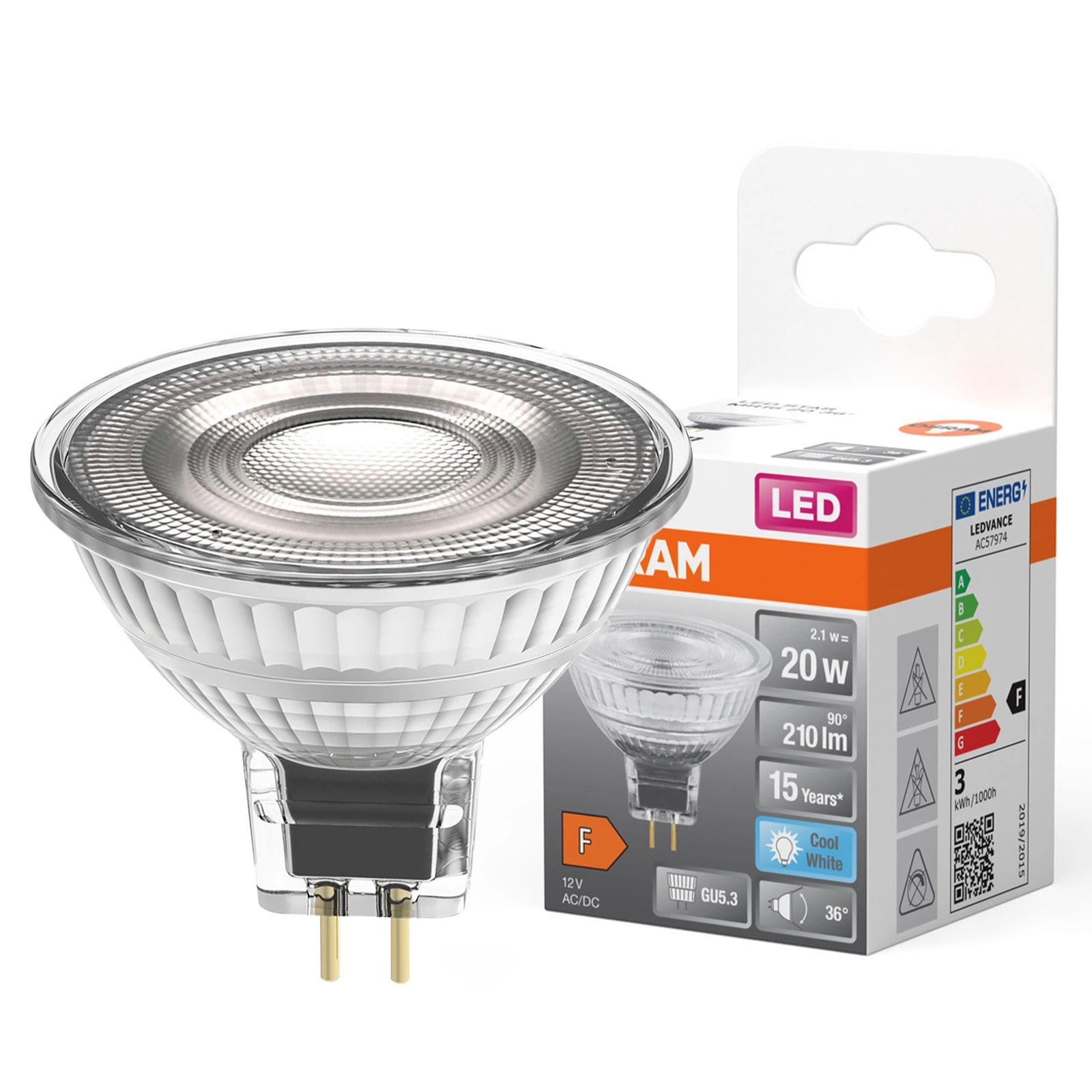 Výrobek navržený renomovanou značkou Osram má dlouhou životnost až 15 000 hodin a je odolný proti vypnutí a zapnutí s maximálním počtem 100 000 cyklů. Žárovka s paticí GU5,3 pracuje při napětí 12 V a má úhel rozložení světla 36°, což umožňuje přesné osvětlení vybraných ploch. Vyberte si Osram a užívejte si spolehlivé a účinné osvětlení.