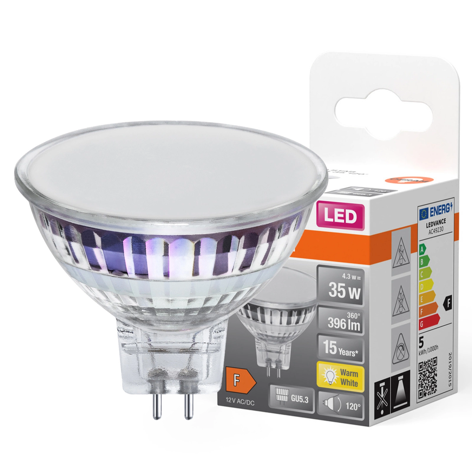 Představujeme nejmodernější žárovku LED MR16 Reflector GU5.3 od renomované značky Osram, která se těší celosvětové důvěře. Se svým příkonem 4,3 W nabízí jas srovnatelný s tradiční 35W žárovkou a zároveň poskytuje úsporu energie. Světelný tok396 lm a barevná teplota2700 K nabízejí příjemné, teplé světlo ideální pro interiéry. Pečlivě zvolený úhel rozložení světla 120° se osvědčí v každé místnosti a nabízí rovnoměrné osvětlení.