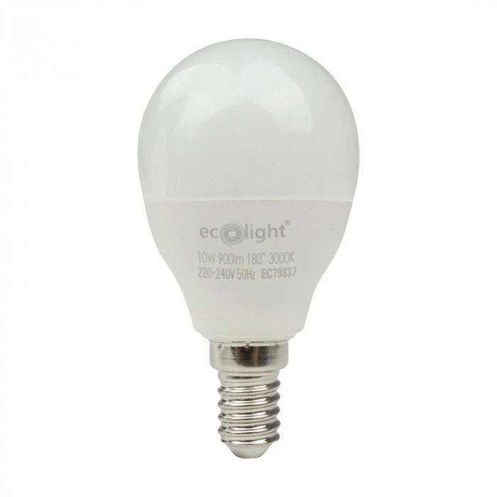 Oživte svůj interiér 10W kulovou žárovkou LED P45 E14 od společnosti Ecolight! Díky svým vynikajícím parametrům, jako je světelný tok 900 lm a barevná teplota 3000 K vyzařující teplé bílé světlo, je ideální pro vytvoření útulné atmosféry v každé místnosti. Díky vysokému úhlu rozložení světla 180° poskytuje rovnoměrné osvětlení i těch největších prostor.