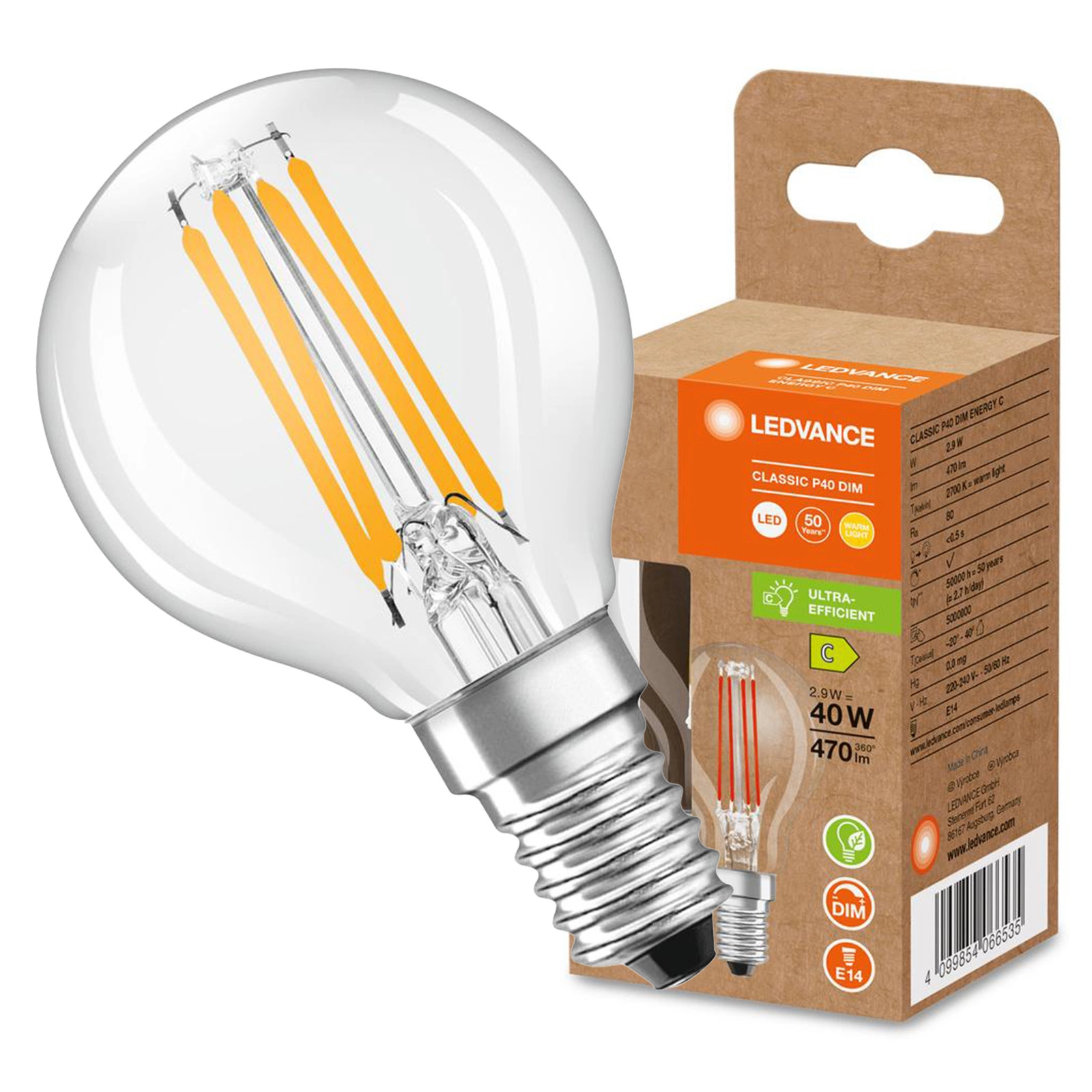 Nabízíme LED žárovku značky LEDVANCE, která je vynikající náhradou za tradiční 40W žárovku a zároveň nabízí výraznou úsporu energie díky příkonu pouhých 2,9 W. Tato žárovka zaručuje světelný tok 470 lumenů při barevné teplotě 2700 K a poskytuje příjemné, teplé bílé světlo ideální pro vytvoření útulné atmosféry v každé místnosti. Díky nejkvalitnějším materiálům a průhledným stínidlům je nejen funkční, ale také estetická. Žárovka má vysoký index podání barev Ra 80, což znamená, že barvy v místnosti budou dokonale reprodukovány.