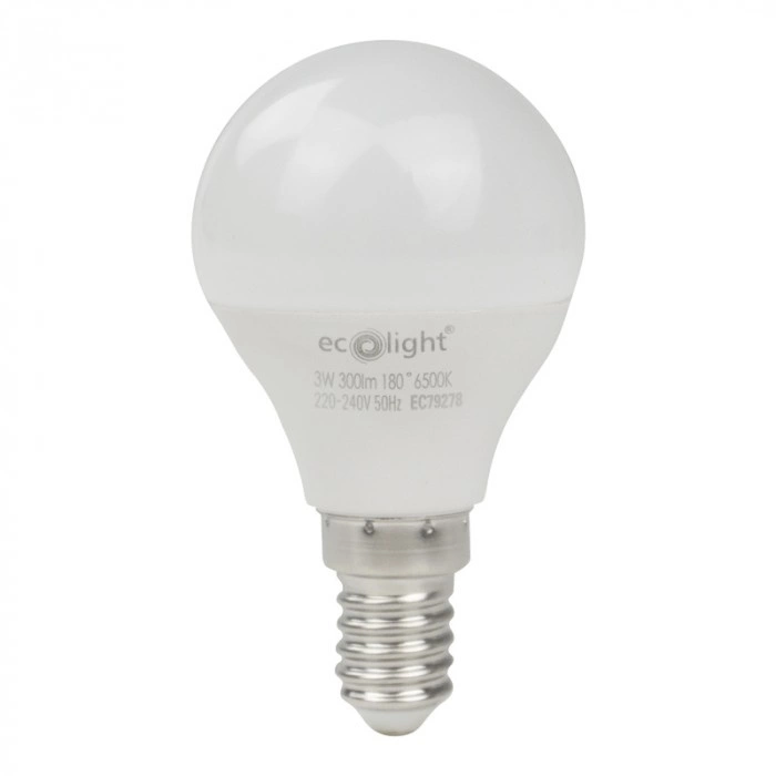 Objevte sílu světla s LED žárovkou P45 E14 od společnosti Ecolight! Tato inovativní žárovka o jmenovitém příkonu 3 W poskytuje působivých 270 lumenů jasného, studeného světla s barevnou teplotou 6500 K. Se světelnou účinností 90 lm/W je ideální pro ty, kteří hledají efektivní osvětlení v domácích interiérech.