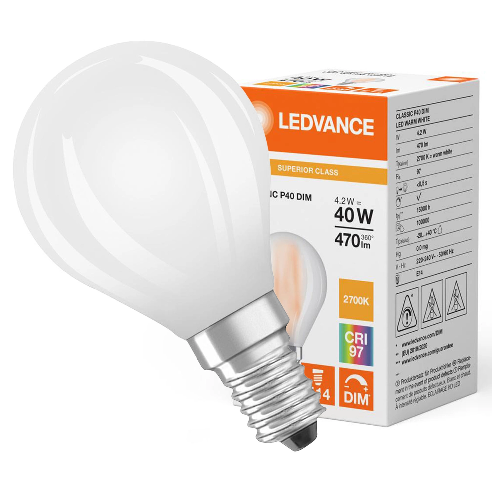 LED žárovka P45 E14 4,2W = 40W 470lm 2700K Teplá bílá FILAMENTNÍ STMÍVATELNÁ LEDVANCE