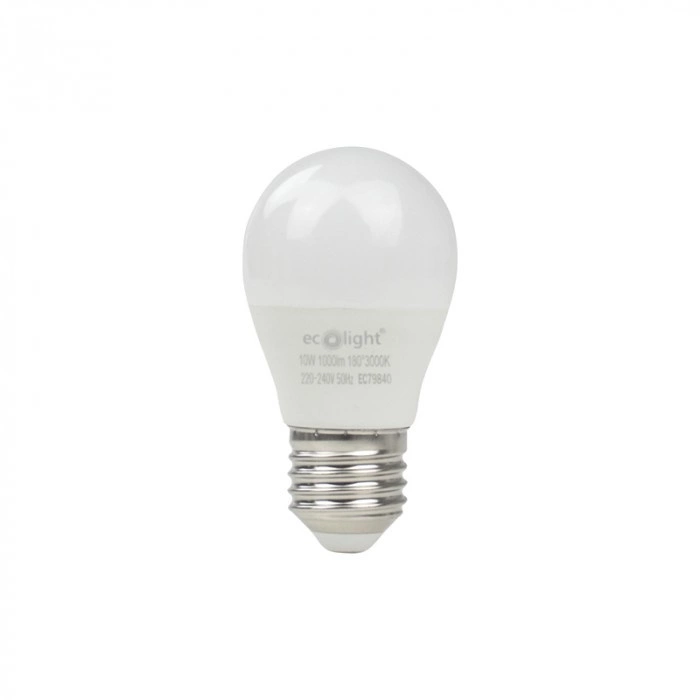 - Energetická účinnost: 10W LED žárovka Ecolight nabízí výkon 900 lumenů, což znamená světelnou účinnost 90 lm/W, která zajišťuje úsporu energie.