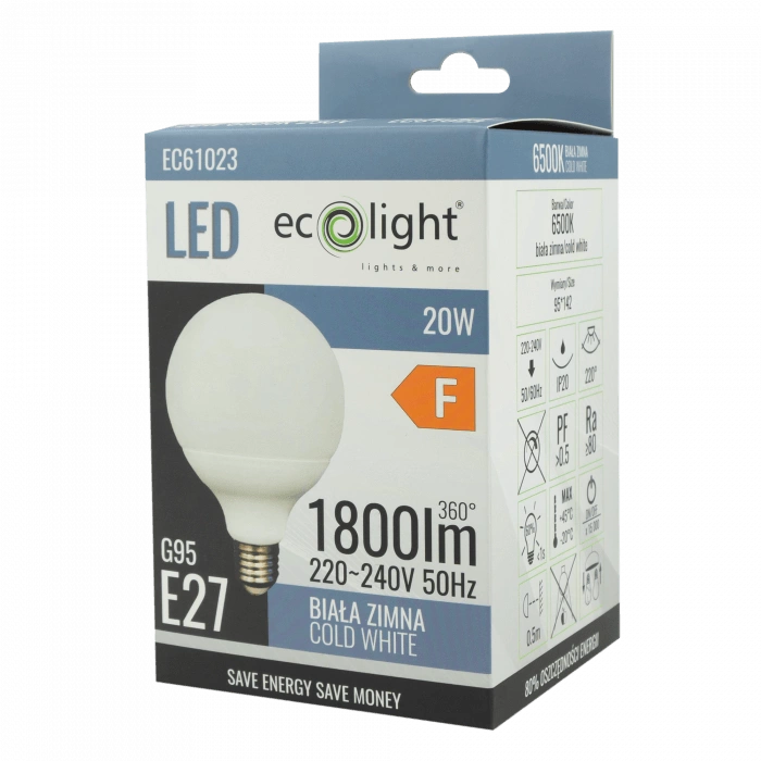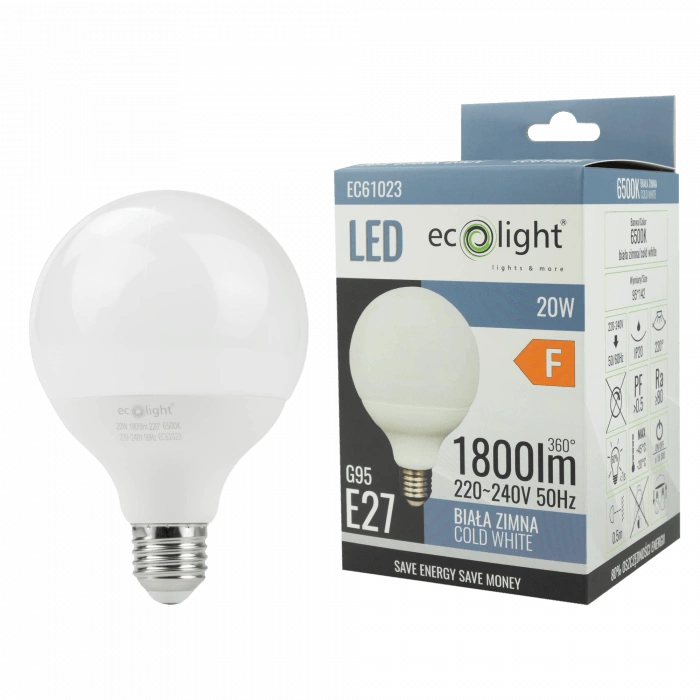 Díky standardní patici E27 je kompatibilní s mnoha svítidly a její estetický design s mléčným difuzorem účinně rozptyluje světlo a eliminuje oslnění. Vysoký index podání barev (CRI ≥ 80) zajišťuje přirozené barvy ve vašem prostředí. Důvěřujte spolehlivosti a trvanlivosti výrobku od renomovaného polského výrobce ECO LIGHT.