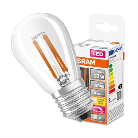 LED žárovka ST45 E27 4,8W = 33W 360lm 2200K teplá bílá 320° stmívatelná retrofit žárovka CLASSIC Osram