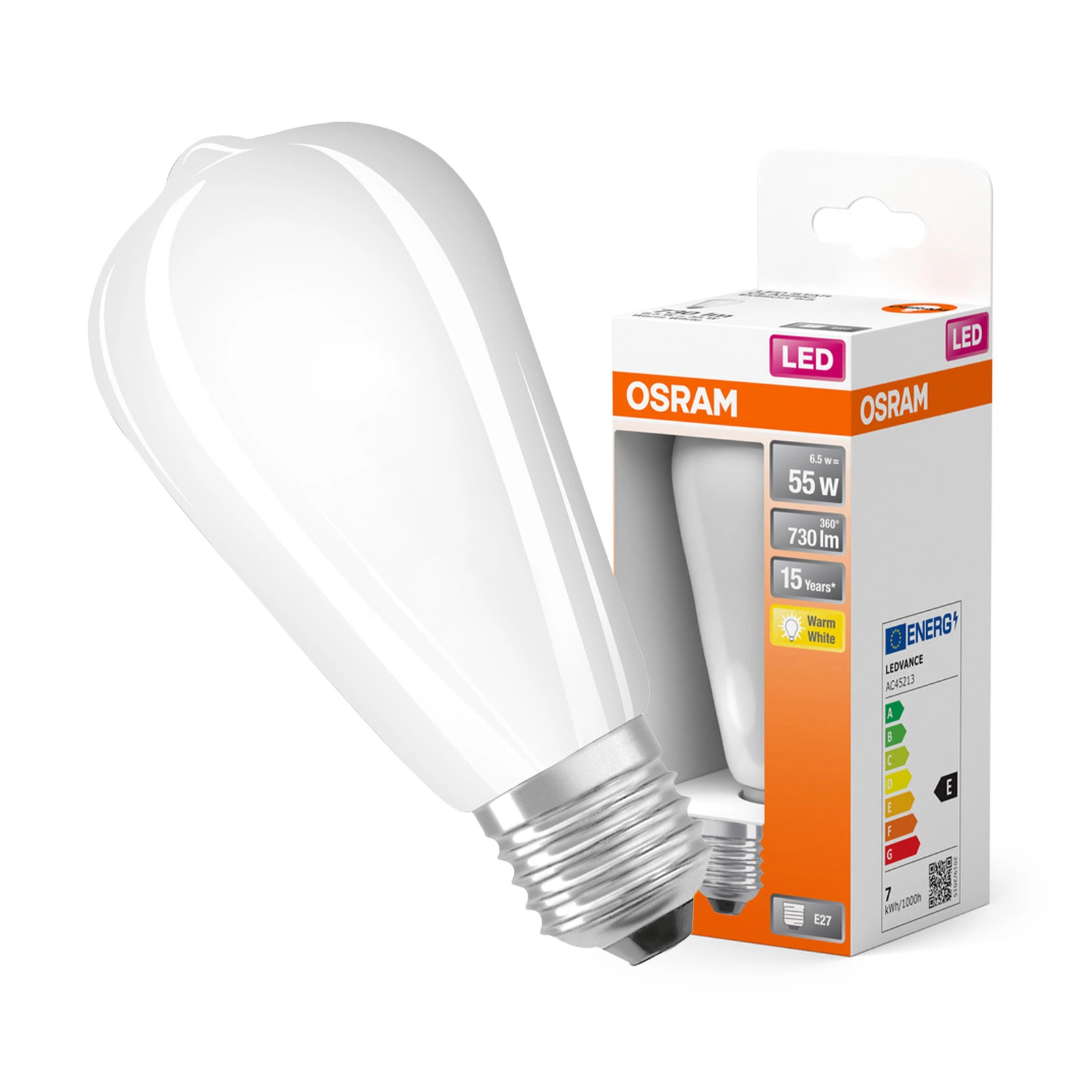 Představujeme vám špičkovou LED žárovku Osram ST64 s paticí E27, která dokonale kombinuje modernost a klasický design z řady Retrofit CLASSIC. Žárovka s příkonem 6,5 W je ideální náhradou za tradiční 55W žárovky, nabízí světelný tok 730 lm a působivou světelnou účinnost 113 lm/W. Vyzařuje příjemné, teplé bílé světlo s barevnou teplotou 2700 K, které je ideální pro použití v interiéru, kde poskytuje odlehlou a útulnou atmosféru.