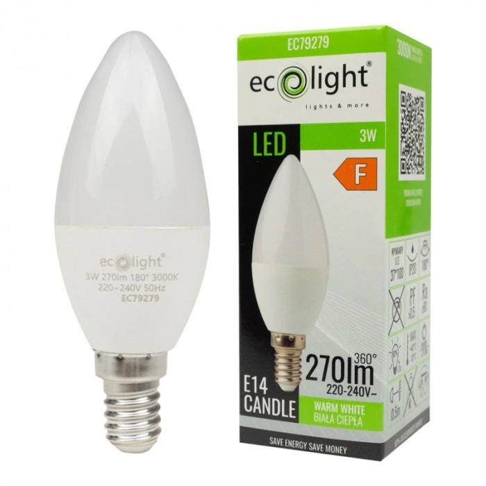 Objevte sílu efektivního osvětlení s naší moderní LED žárovkou B37 Ecolight! Tato mimořádně úsporná žárovka o jmenovitém příkonu 3 W poskytuje světelný tok 270 lm, takže je ideální pro vytvoření útulné atmosféry v každé místnosti. Její teplá barva světla s barevnou teplotou 3000 K činí interiéry obzvláště příjemnými a pohodlnými.
