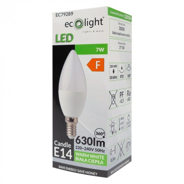 Objevte výjimečnou kvalitu osvětlení s LED žárovkou ve tvaru svíčky B37 od společnosti Ecolight. Tato úžasná žárovka s paticí E14 a příkonem 7 W zajistí nejen vynikající osvětlení, ale také výraznou úsporu energie. Vyzařuje příjemné teplé světlo s barevnou teplotou 3000 K, které je ideální pro vytvoření náladové atmosféry ve vaší domácnosti.