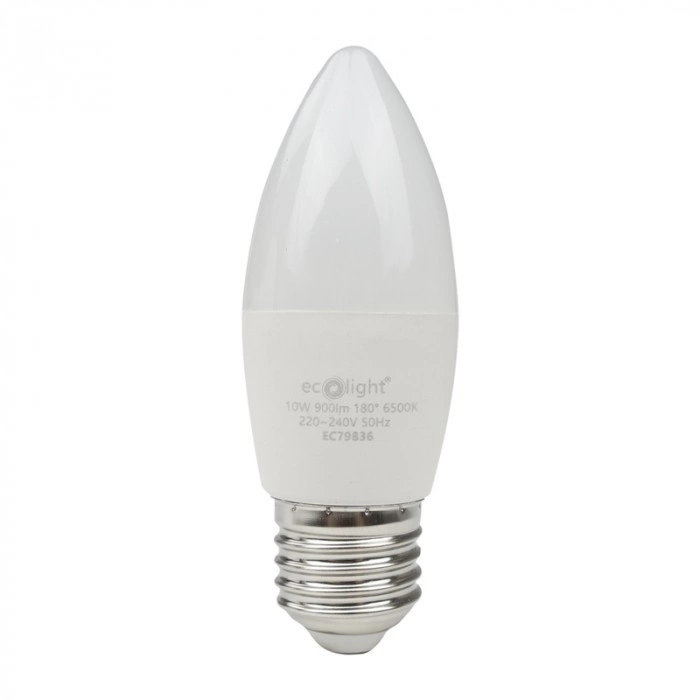 LED žárovka svíčka B37 E27 10W 900lm 6500K studená bílá Ecolight