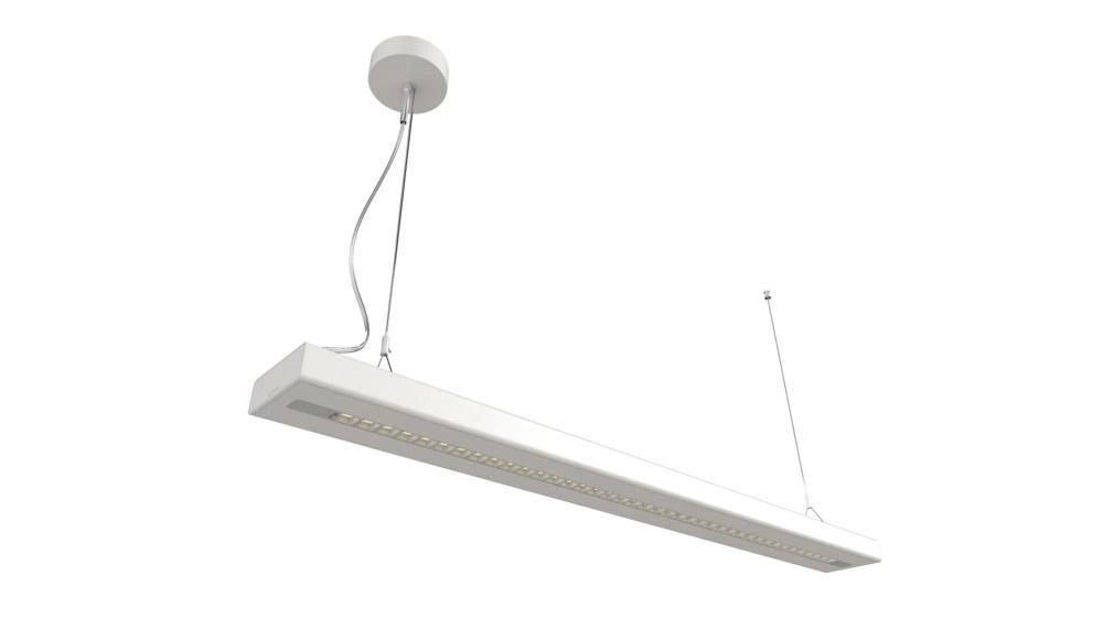 Svítidlo je vyrobeno z odolného hliníku v elegantní bílé barvě a díky možnosti povrchové a závěsné montáže umožňuje flexibilní přizpůsobení různým potřebám uživatelů. Výrobek má vysoký index podání barev Ra 90 a je stmívatelný pomocí DALI. Svítidlo nabízí životnost až 100 000 hodin a odolnost proti poškození (krytí IP20, stupeň IK06), což z něj činí ideální volbu pro profesionální aplikace.
