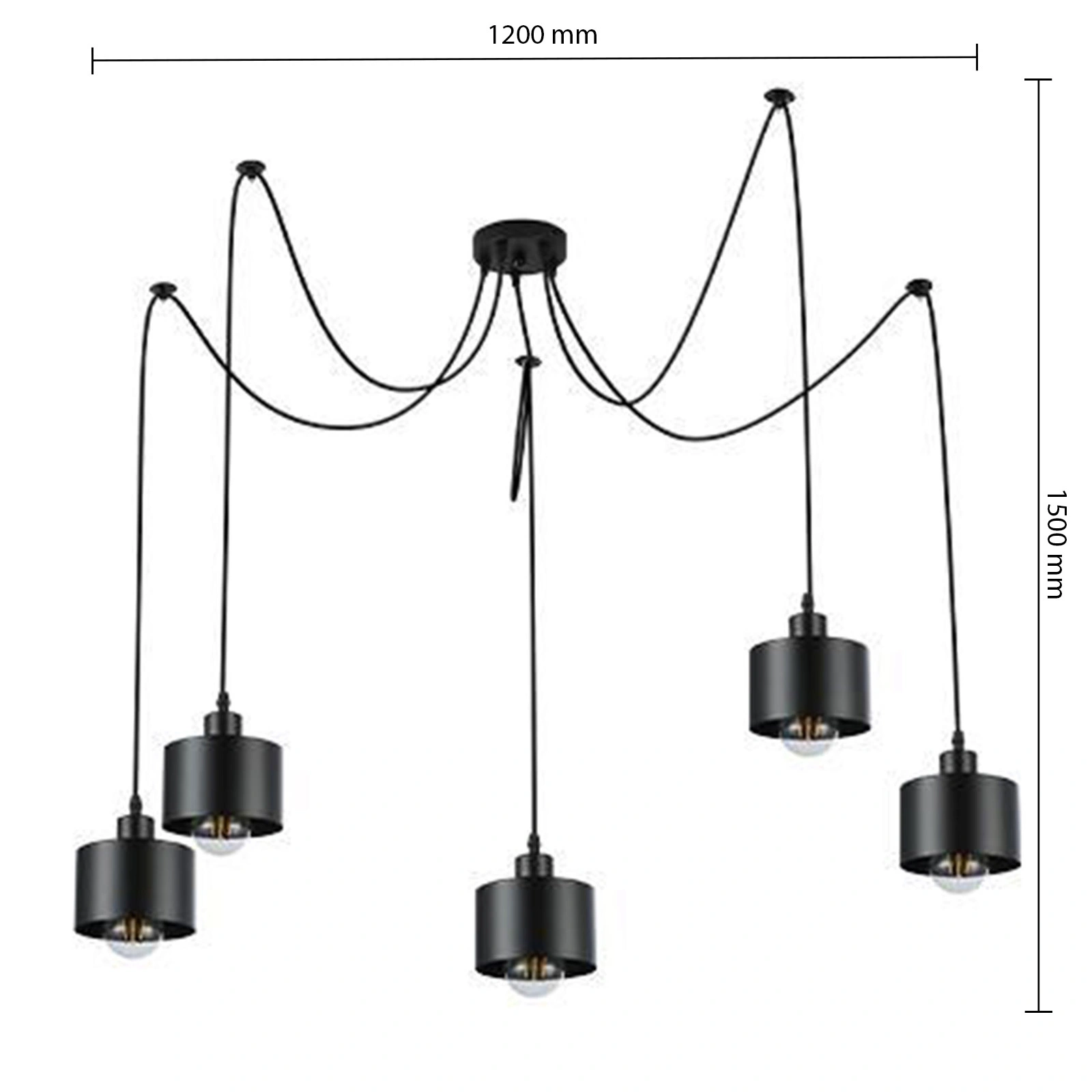 Masterled Stropní svítidlo 5x E27 Černá závěsná lampa Elza