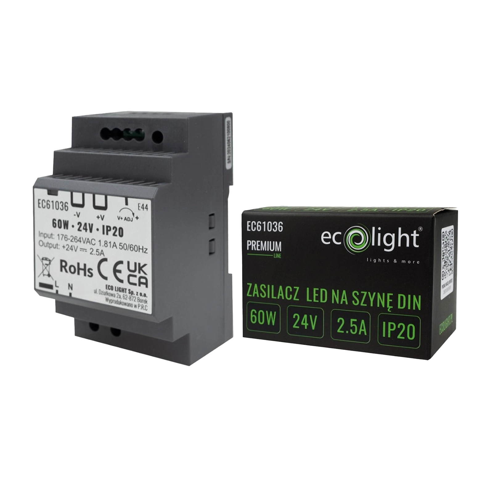 Napájecí zdroj LED Premium Line 60W 24V Ecolight na lištu DIN