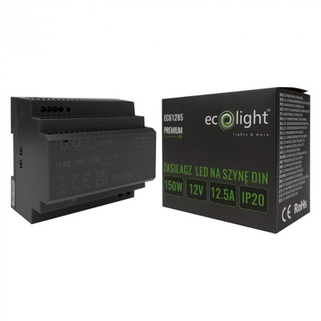 Představujeme vám napájecí zdroj PREMIUM 150W 12V na DIN lištu, který poskytuje spolehlivé řešení napájení pro profesionální instalace. Produkt poskytuje výkon 150 W při výstupním napětí 12 V DC a proudu 12,5 A. Zdroj se vyznačuje vysokou kvalitou řady PREMIUM LINE, která zajišťuje dlouhý a bezproblémový provoz. Jeho kompaktní polyvinylchloridové (PVC) pouzdro v černé barvě umožňuje snadnou montáž na lištu DIN, což je ideální pro použití v rozváděčích. Díky stupni krytí IP20 je určen pouze pro vnitřní použití.