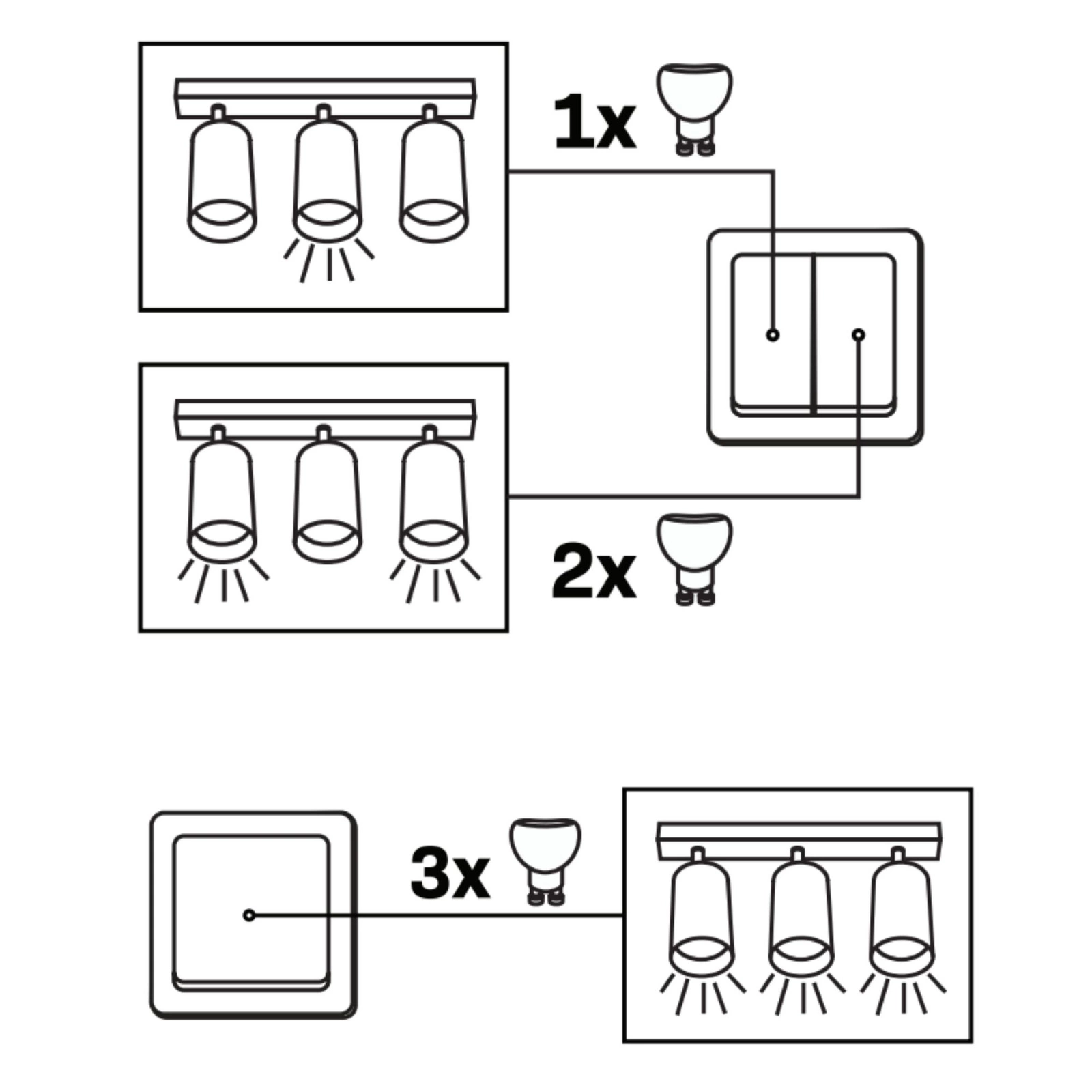 - Multifunkční: Díky třem vyměnitelným světelným zdrojům GU10 umožňuje výrobek přizpůsobit osvětlení vašim individuálním potřebám.