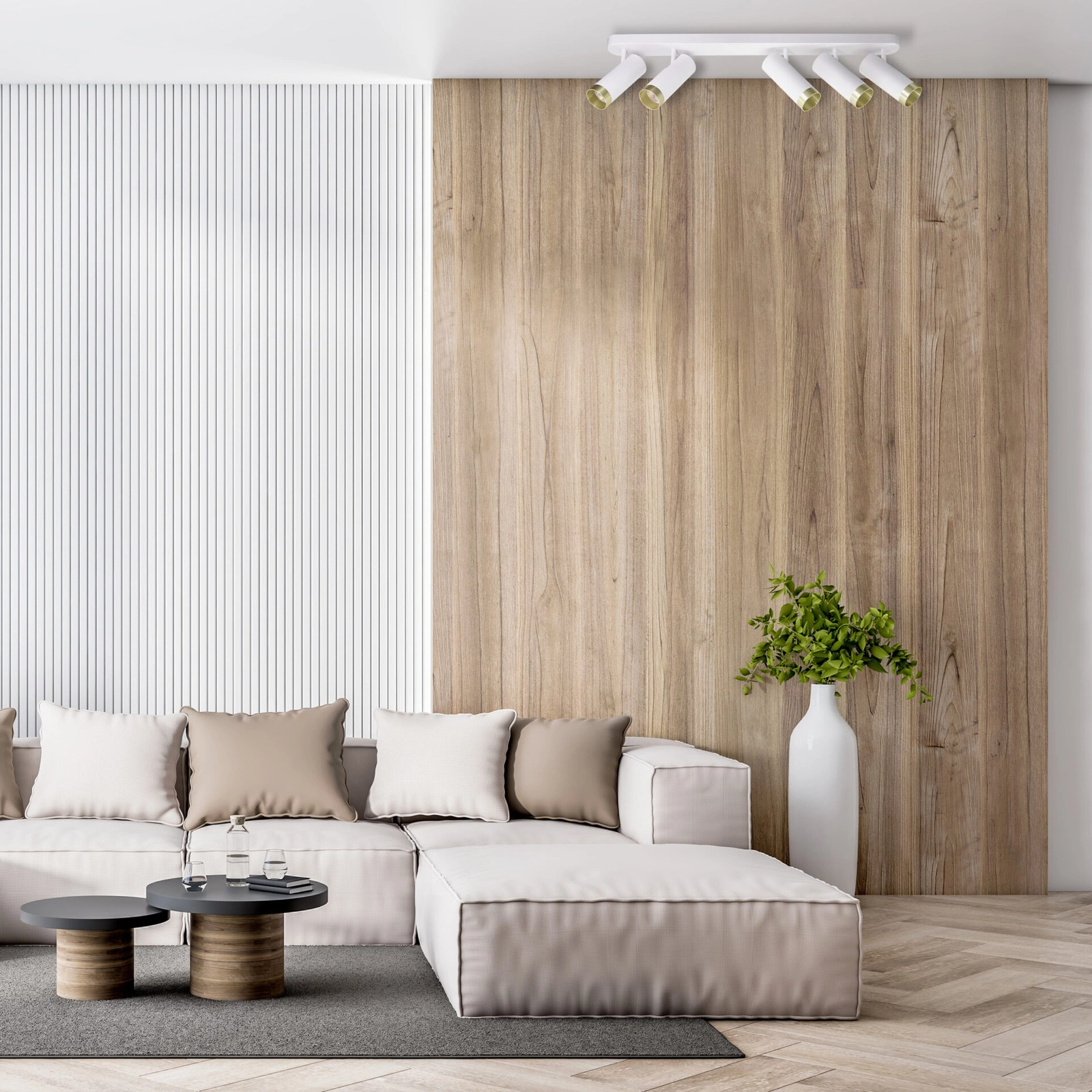 Zvolte svítidlo FADO, které kombinuje moderní styl a jedinečnou funkčnost, aby každý prostor ve vaší domácnosti byl jedinečný! Toto stylové svítidlo je vyrobeno z hliníku a kombinuje bílou barvu s jemným zlatým kroužkem, což mu dodává jedinečnou estetiku. Pět světelných bodů, každý o maximálním výkonu 10 W, vhodných pro výměnné světelné zdroje s paticí GU10, vám poskytne nejen dokonale uspořádané světlo, ale také možnost nastavit si barvu podle svých představ. Ideální do obývacího pokoje, jídelny, ložnice, kanceláře nebo chodby.