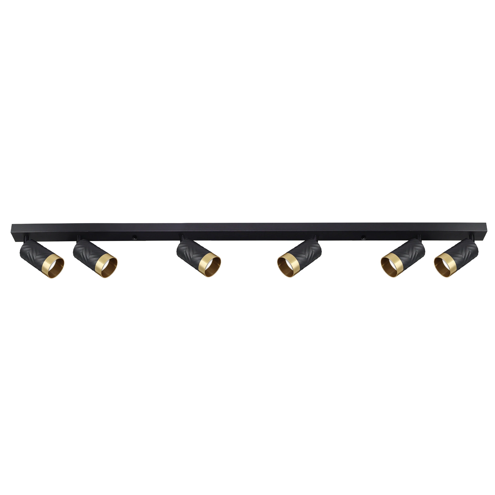 Vneste svůj domov do nové éry stylového osvětlení s nástěnným a stropním svítidlem Sanico Goldlux ARRAS. Jeho elegantní průmyslový design je dokonalou kombinací klasické černé barvy s ušlechtilými zlatými akcenty, která vnese do vašeho interiéru nádech rafinovaného luxusu. Je nejen výrazným dekorativním prvkem, ale také funkčním řešením. Je vybaveno šesti světelnými body GU10 a umožňuje nastavit směr světla podle vašich představ, čímž dokonale zvýrazní vybrané detaily místnosti.